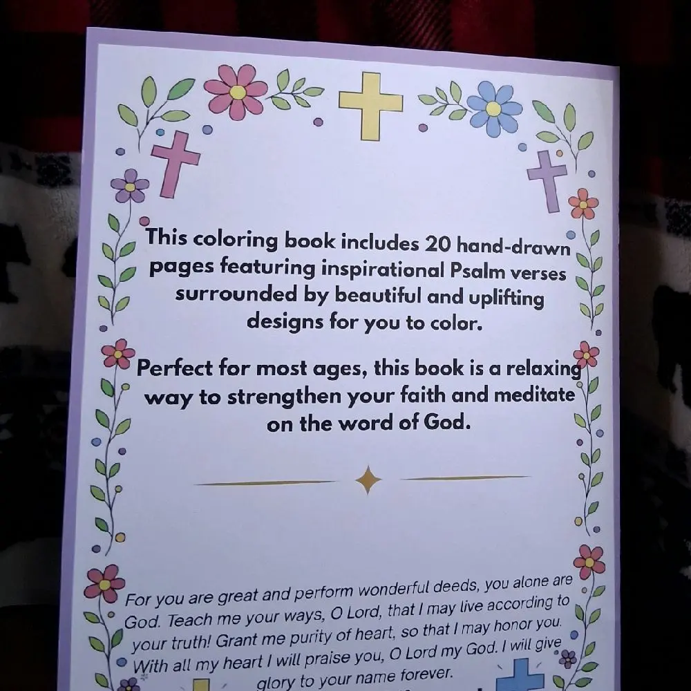 Each page is designed to help you slow down, relax, and connect with God’s word through creativity. Whether you’re coloring for quiet time, stress relief, or faith-filled inspiration, this book is perfect for all ages.