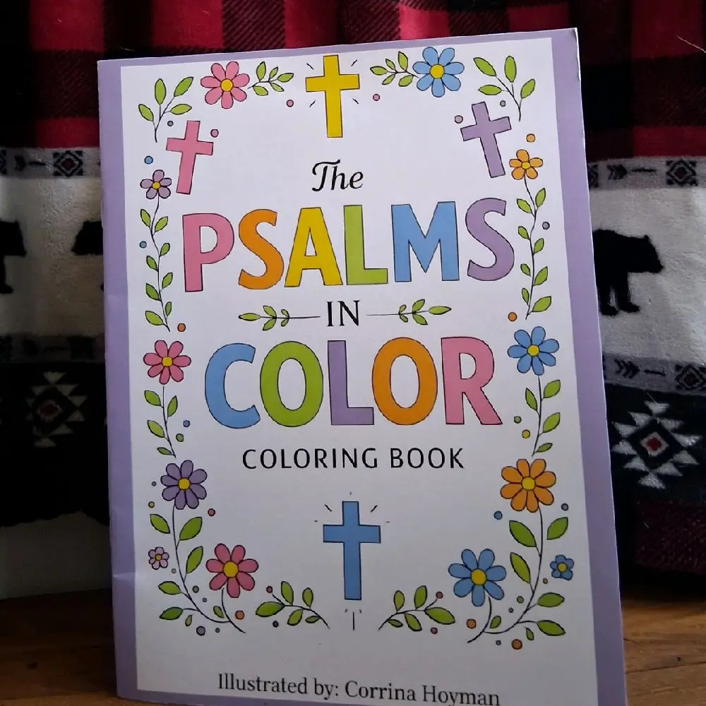 The Psalms in Color is a beautiful coloring book featuring 20 hand-drawn pages inspired by uplifting Psalms.
