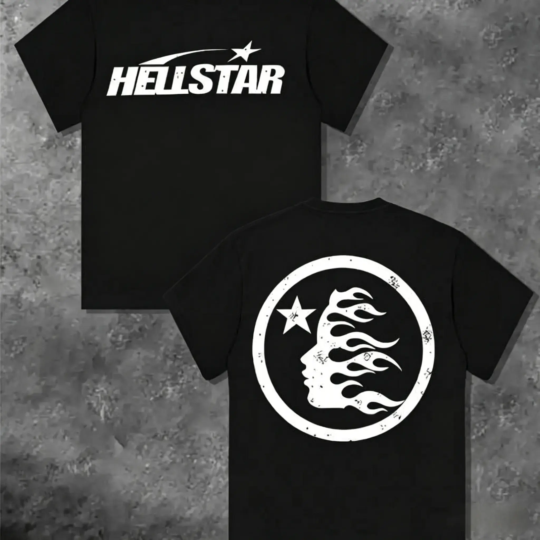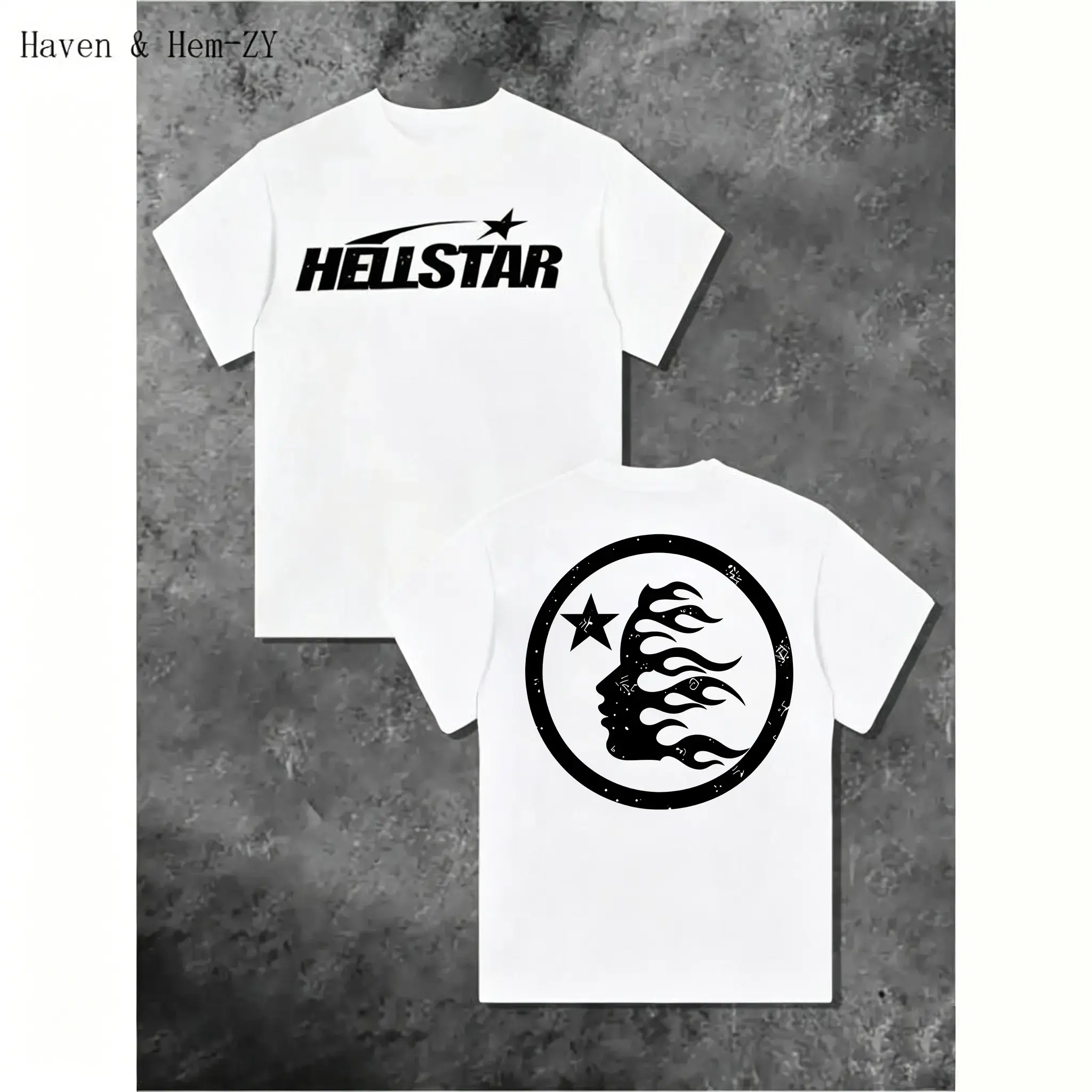 TLXT 100%25 Cotton Hell Star Pattern Double Sided Printed T-Shirt, High Quality Crew Neck Casual Short Sleeve Top for Spring & Summer