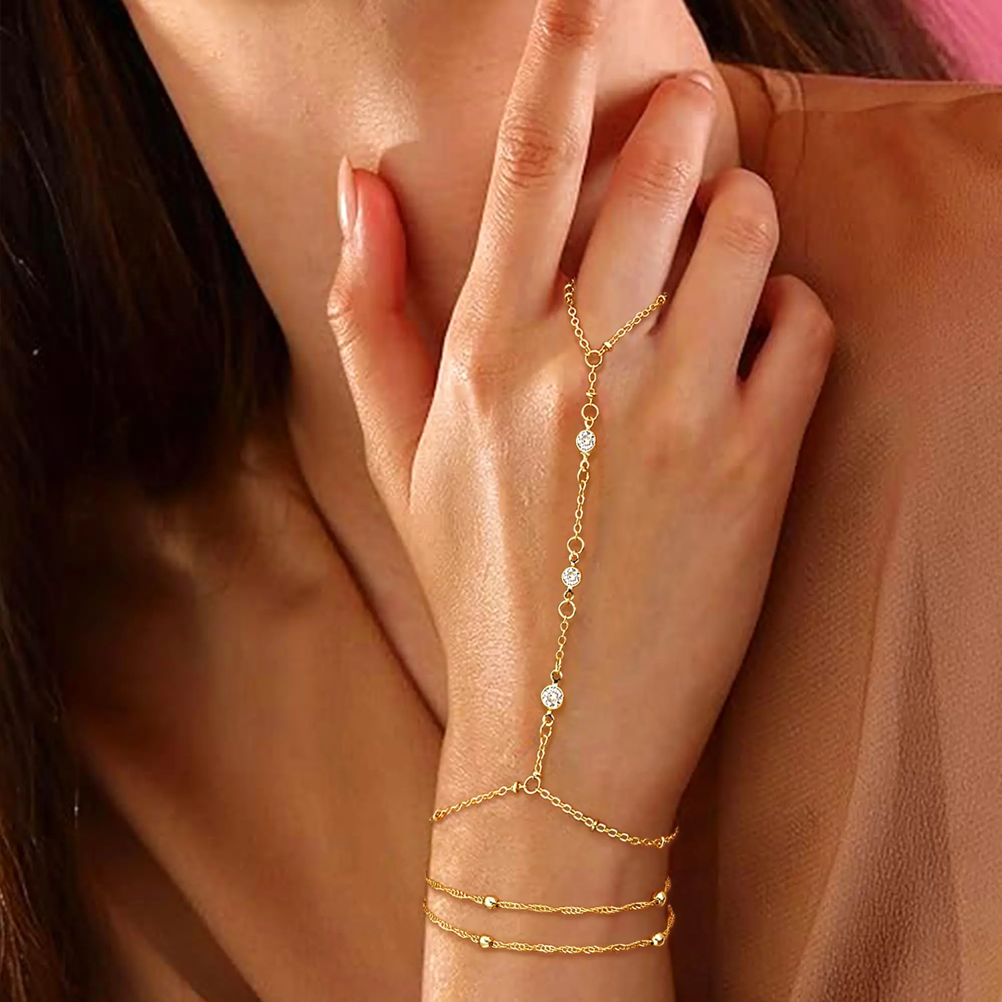 ·Adjustable Fit: The main bracelet measures 6.3" with a 2" extension, while the delicate hand chain is 3.15" for versatile styling.