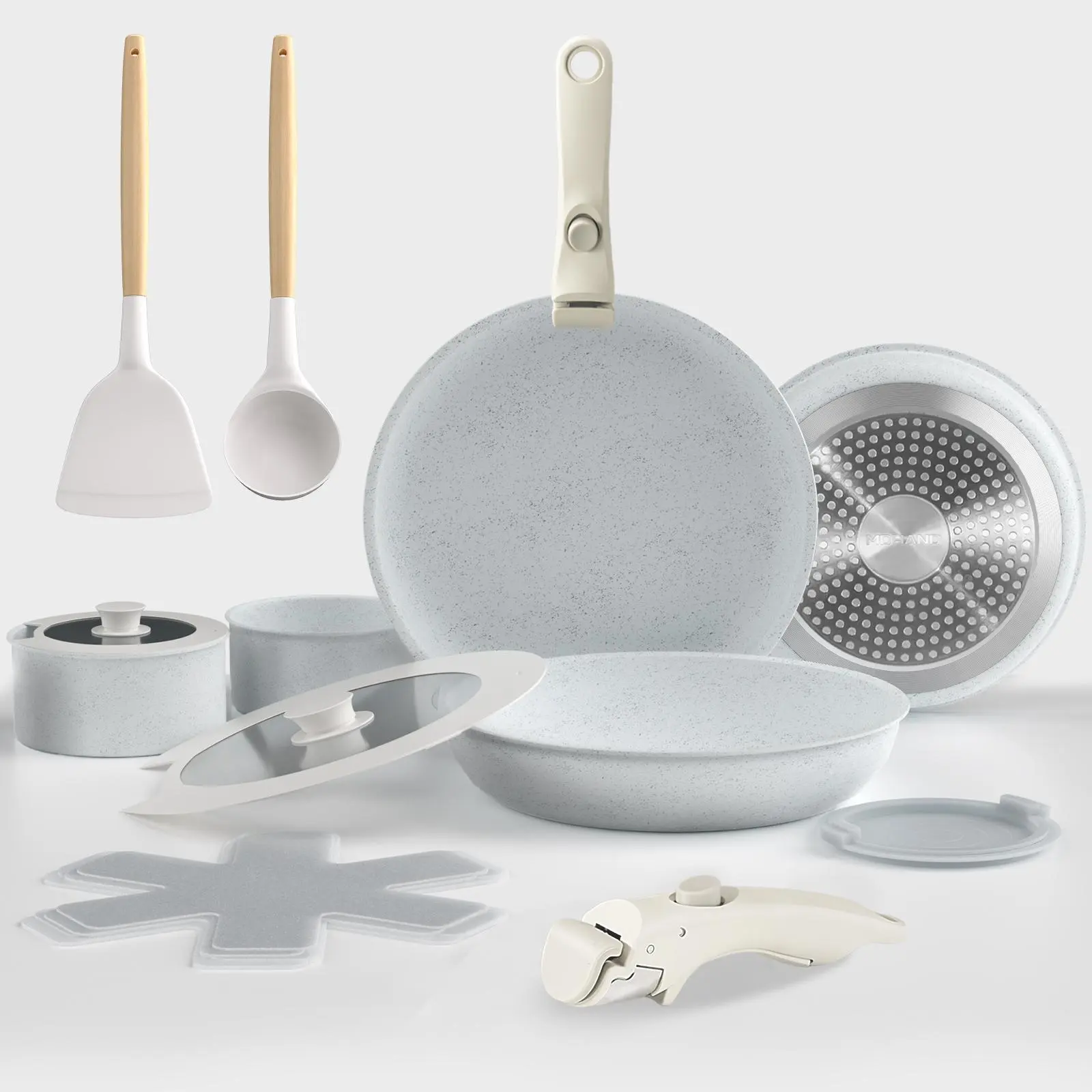 Easy Storage: Stack pots and pans neatly in a cabinet or drawer, saving 70% of kitchen space; this ceramic cookware set is easy to store and carry, suitable for compact spaces and on the go. Perfect for compact spaces, RVs, and campers.