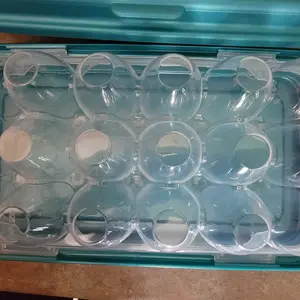 Thick plastic and sturdy, And easy to get the eggs out of the container