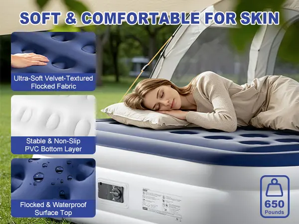 4. Upgraded Durable Material: Constructed with heavy-duty PVC, this airbed is waterproof, wear-resistant, and built to withstand daily use indoors or outdoors.