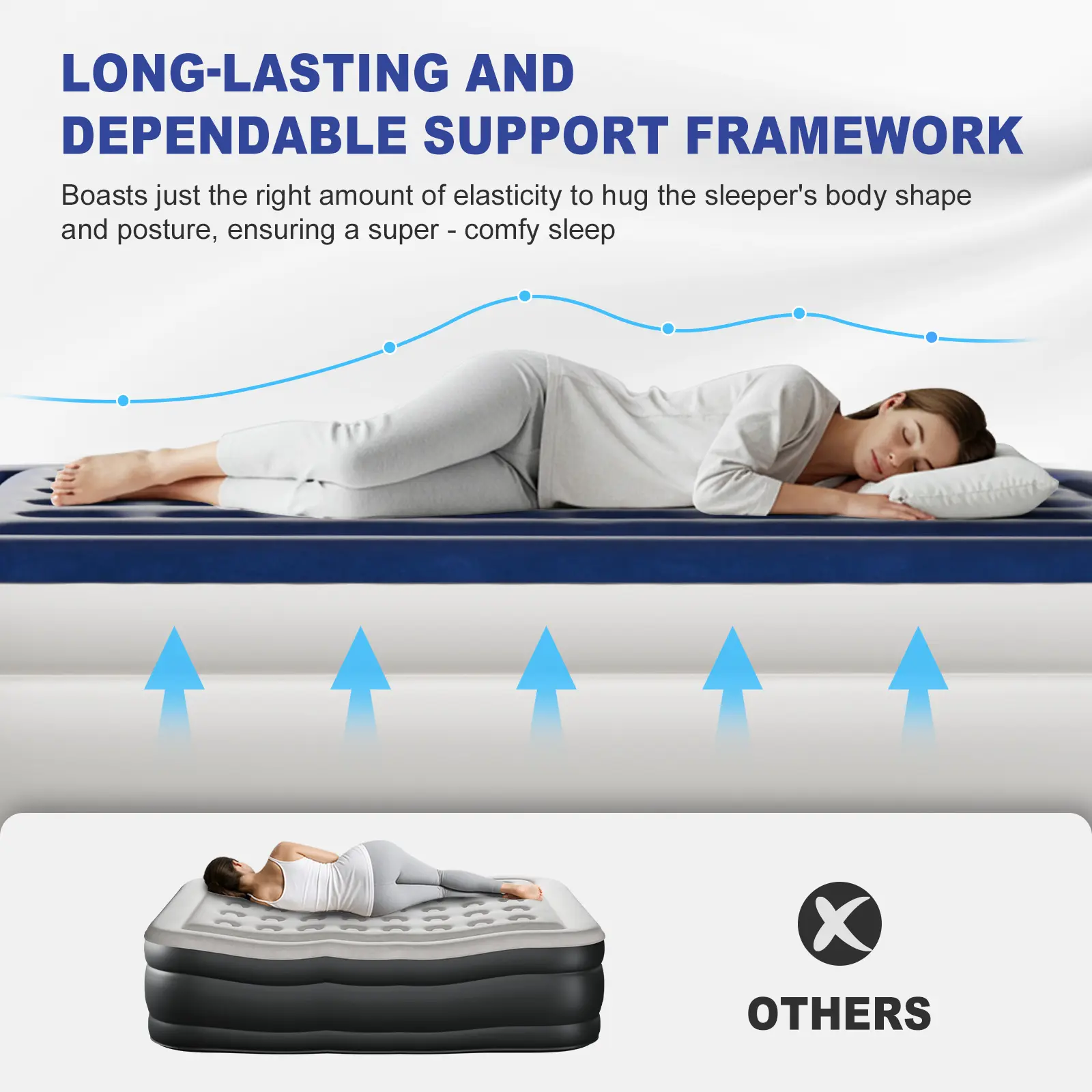 2. Maximum Comfort with Chamber Support: Designed with an advanced chamber structure that evenly distributes weight and prevents sagging, offering hotel-level support and a firm, stable sleep surface.