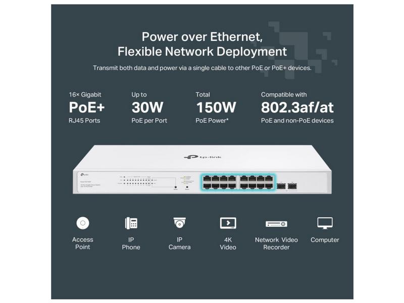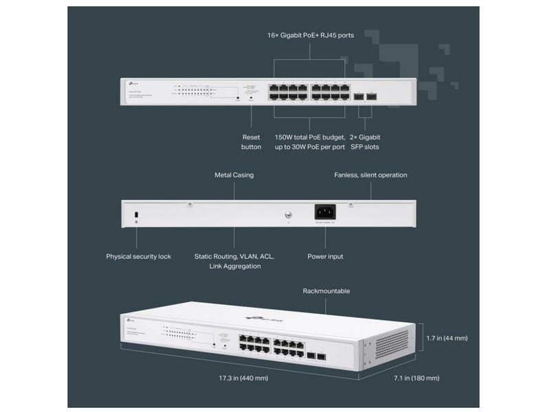 TP-Link Festa FS318G 18 Port Gigabit Smart Managed Network Switch - 16 RJ45 ports & 2 SFP slots, Free Cloud Access, Static Routing, Vlan, IGMP Snooping, rack-mountable, fanless, Does not work w/ Omada