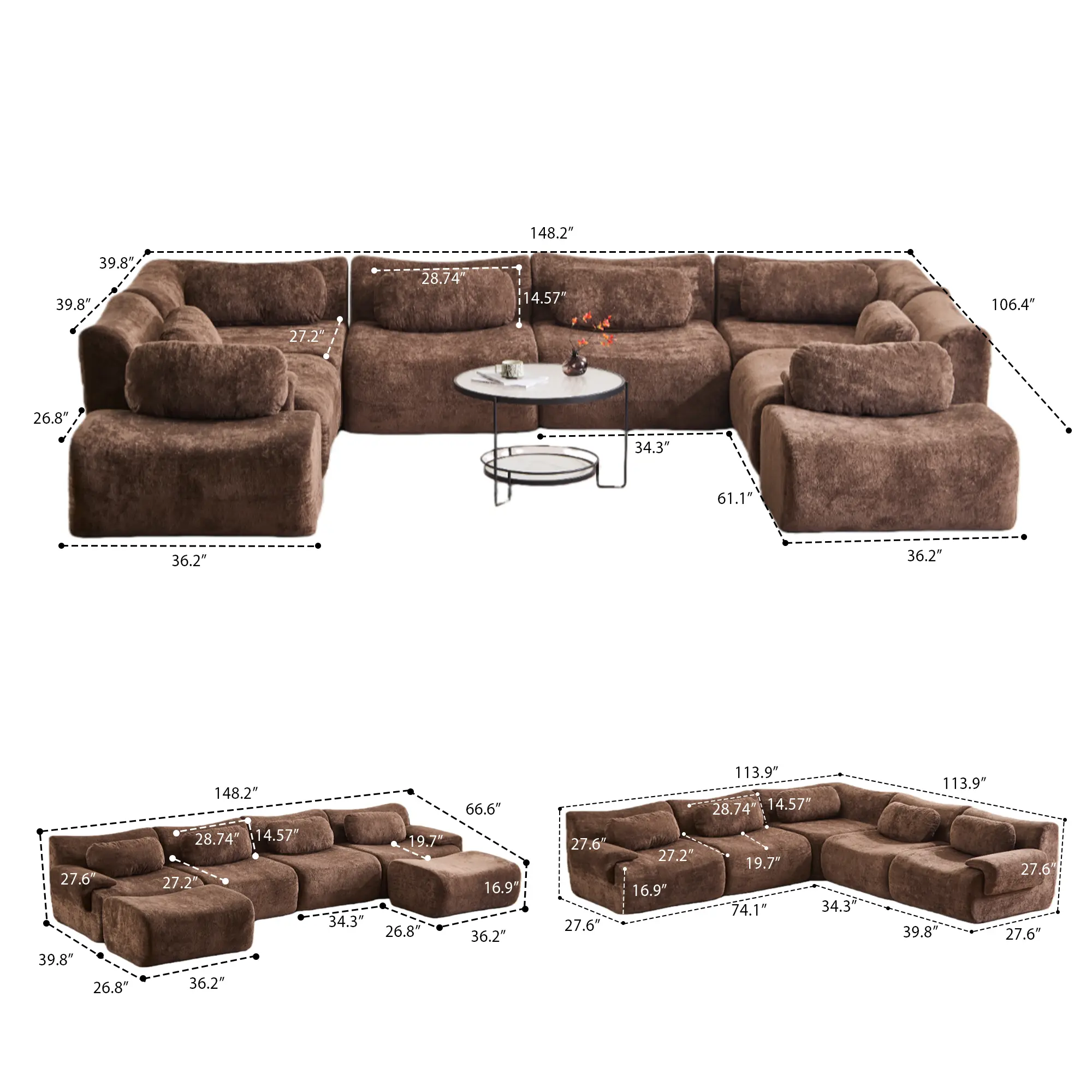 ·Modular sectionality: Allows for flexible arrangement.