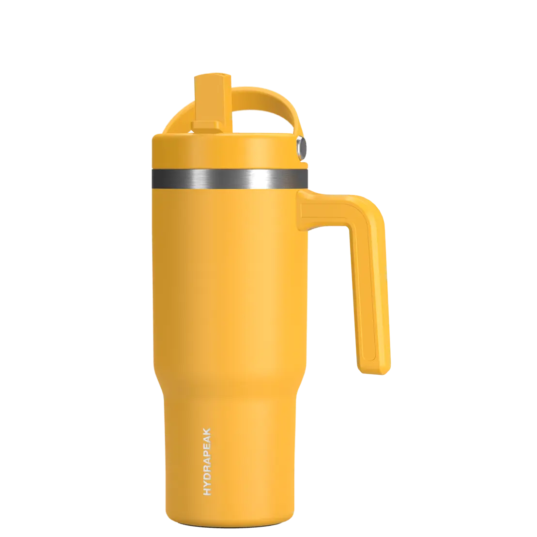 PREMIUM: This Hydrapeak Insulated Tumbler with Straw and handle is made of high quality 18/8 food grade stainless steel that makes it sturdier, more durable, and ensures the cup remains odor-free. This travel cup was made to take everywhere and is perfect for kids and adults.