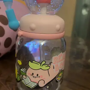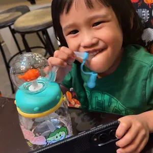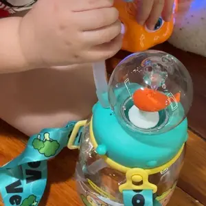Equipped with a straw, it allows for drinking easily from any angle. The built-in anti-colic valve helps reduce air intake and discomfort, while the adjustable strap makes it easy to carry on the go.