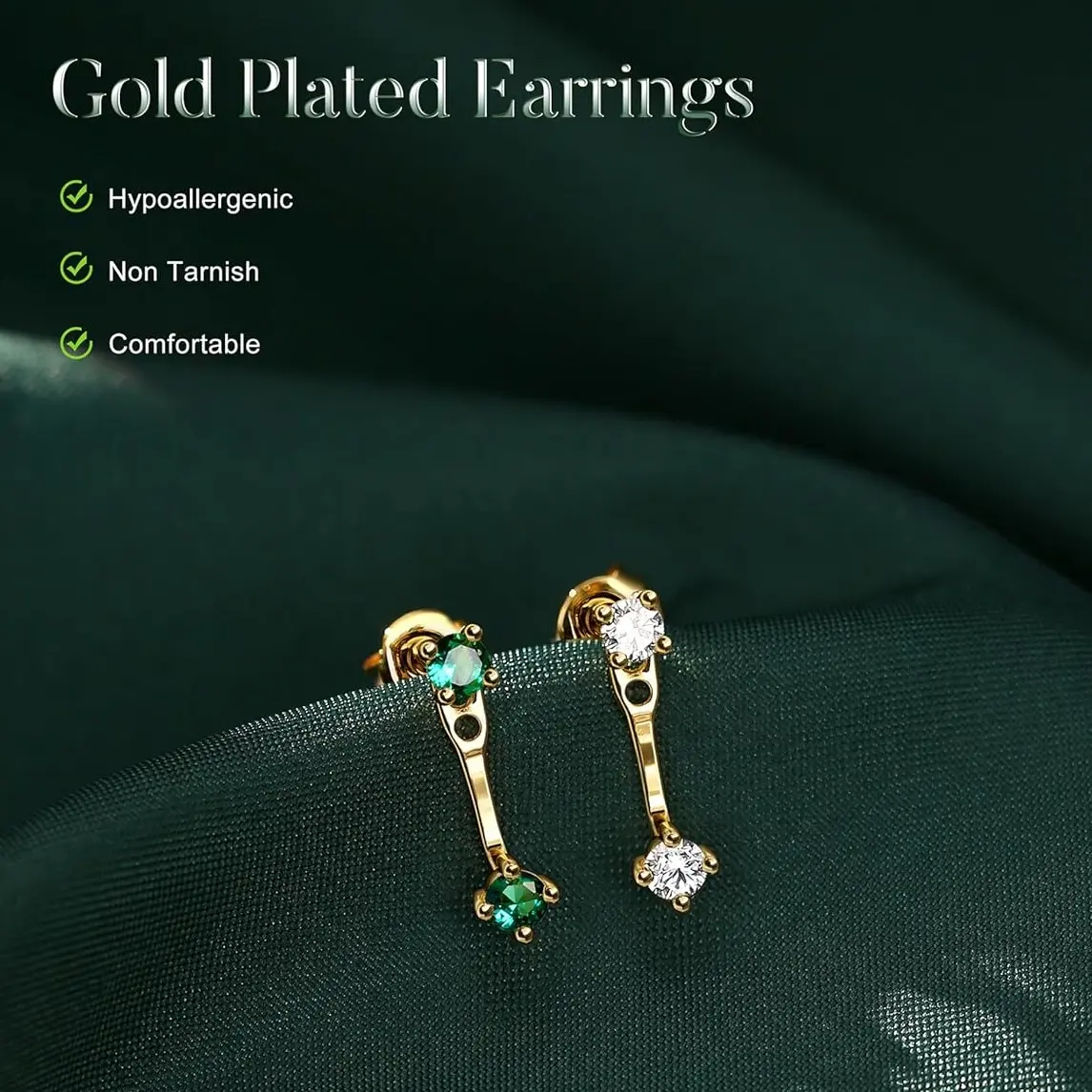 ·6 PCS of cute earrings: gold flat back studs, earrings jacket, huggie hoops, and dangle earrings