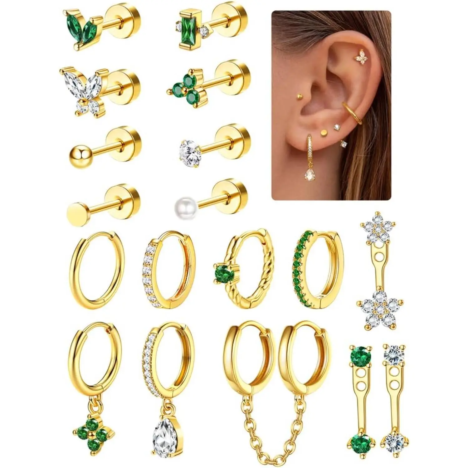 🌟 18pcs 18K Gold Plated Earrings Set for Women 🌟