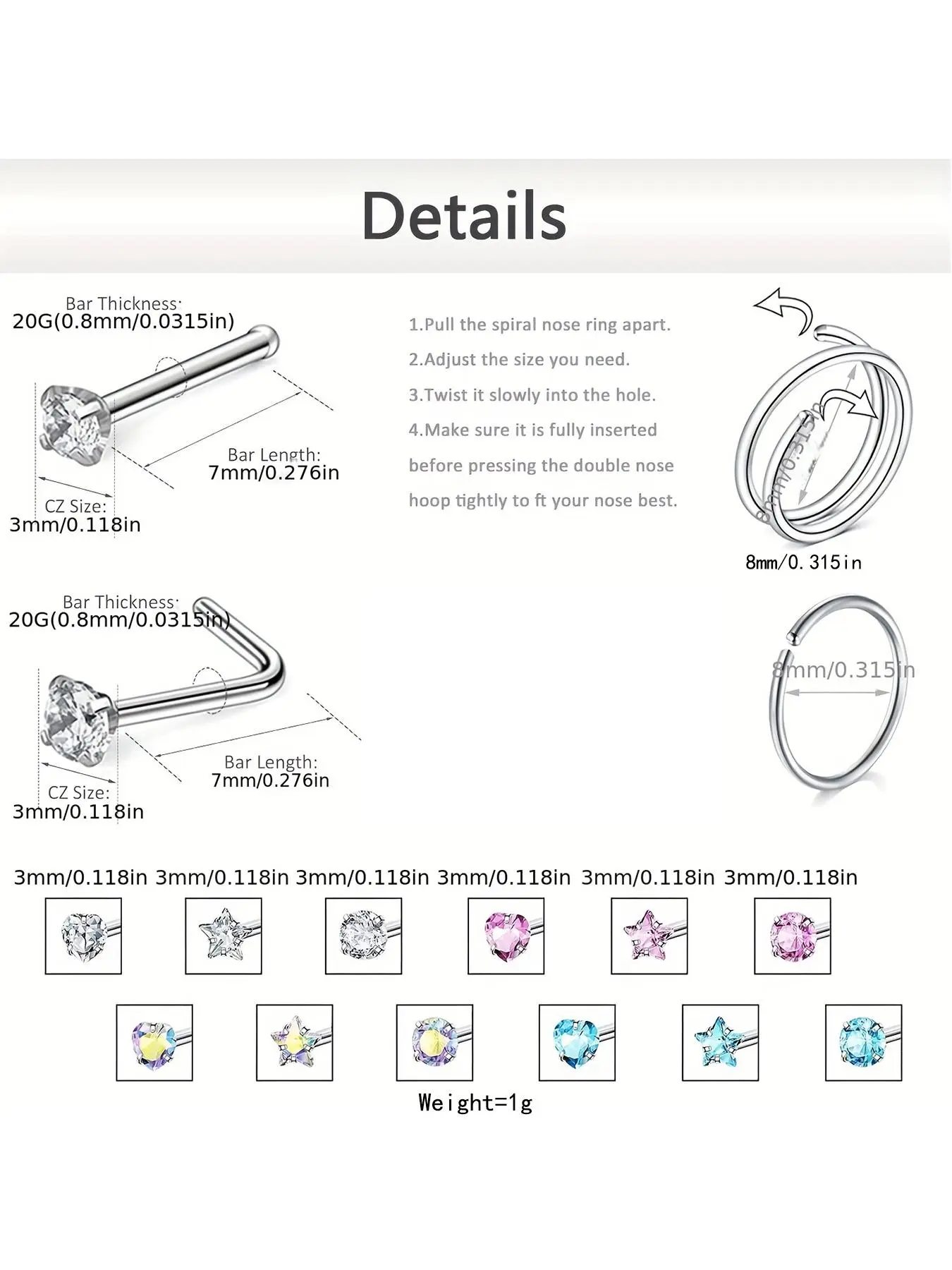 ·【Ideal Gift】: This set of nose rings & L-shaped nose studs makes a perfect gift for friends and family on special occasions.
