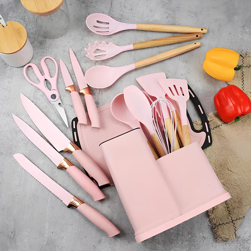 ·19-Piece Set: Offers a variety of tools for cooking and baking.