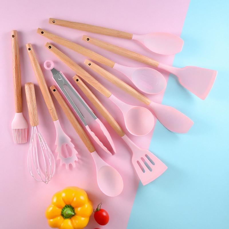 Cooking utensils are made of food-grade silicone, withstand up to 464°F (approx. 240°C). Heat-resistant handles ensure a comfortable grip, safe for non-stick cookware.