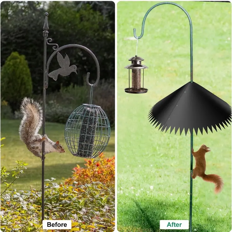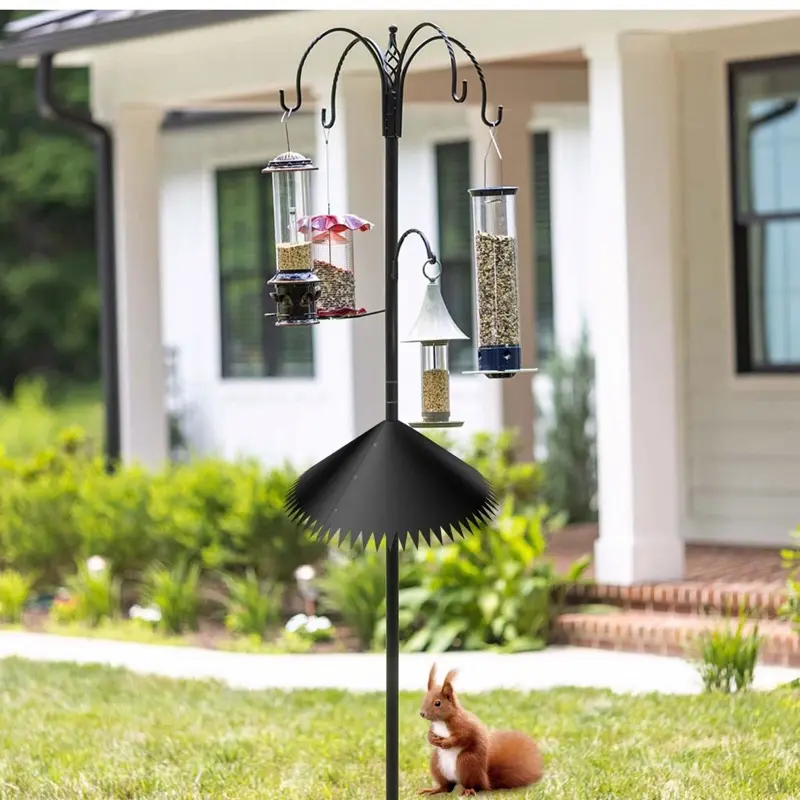 their meals safely. It's a black mount bird house guard that deters squirrels