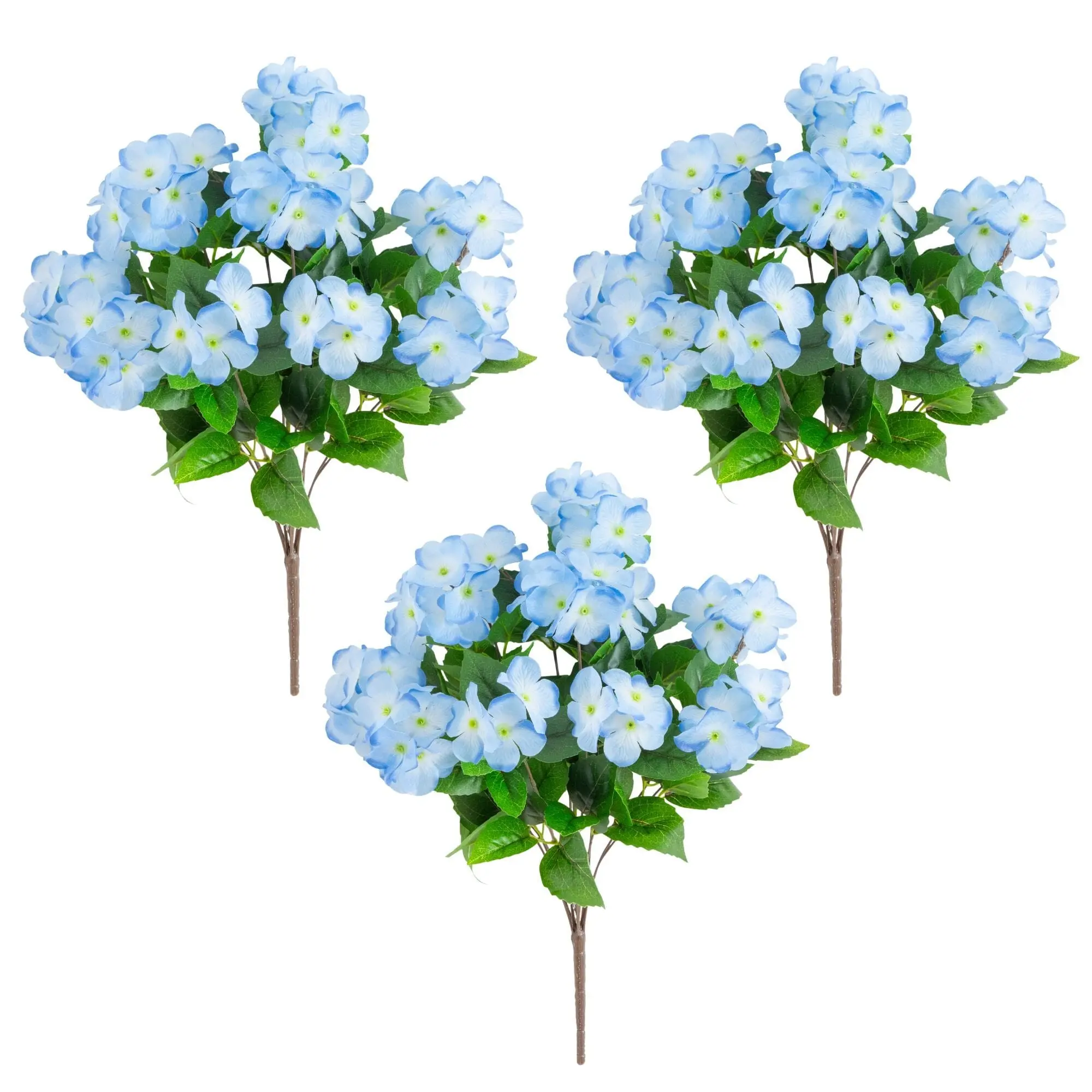 5. 19" UV Resistant Artificial Hydrangea Bush (Indoor/Outdoor) - Set of 3