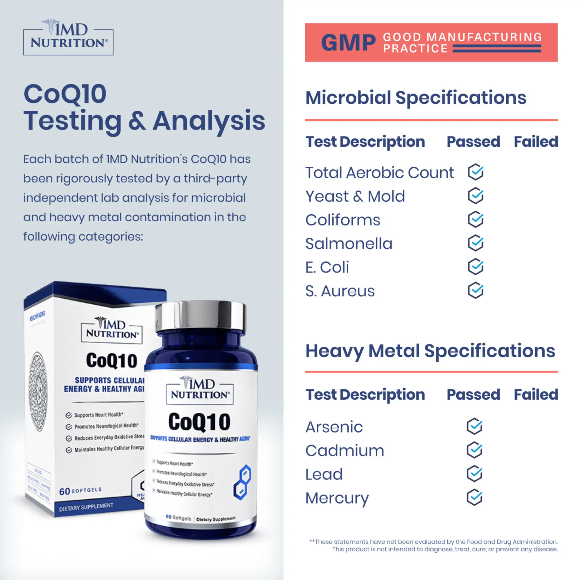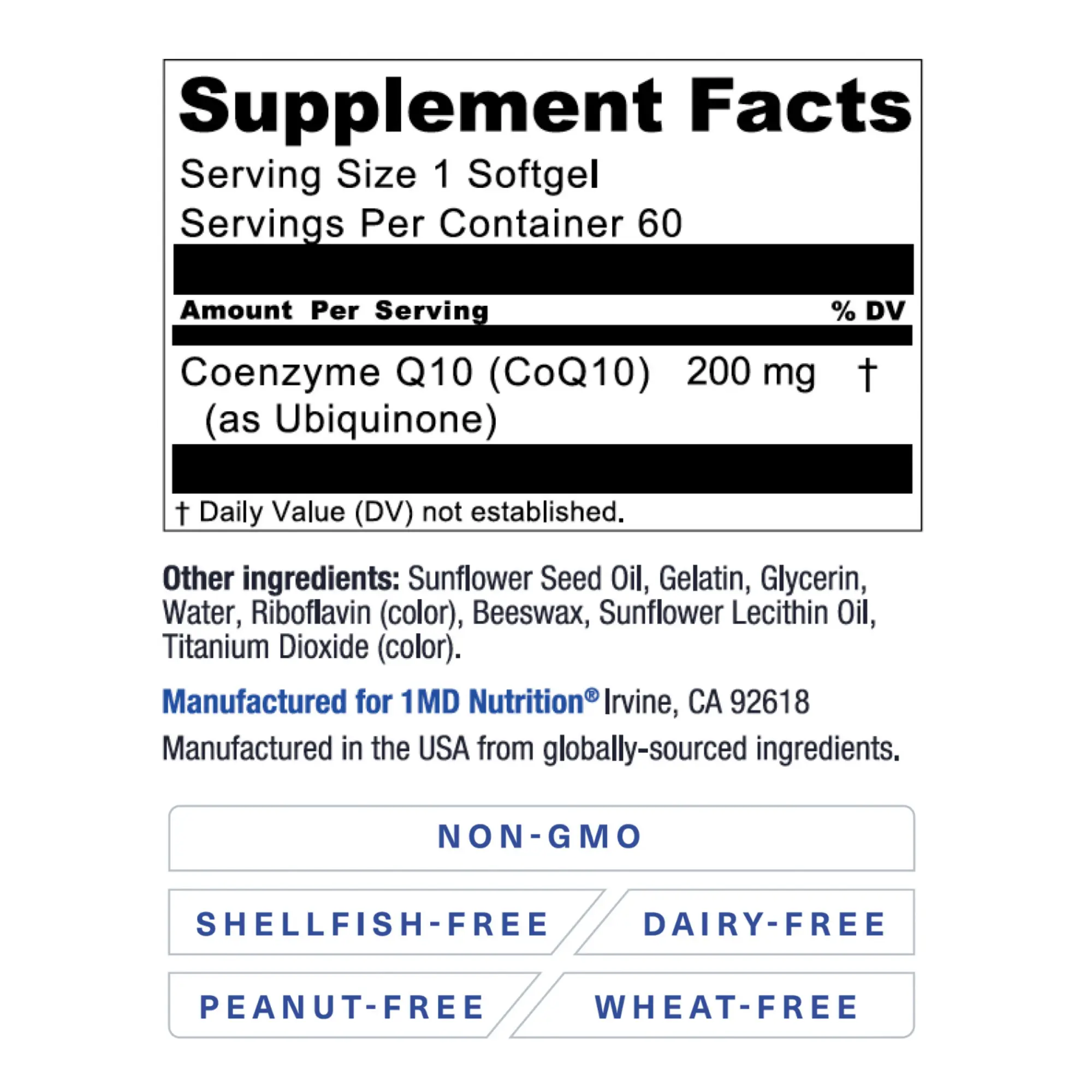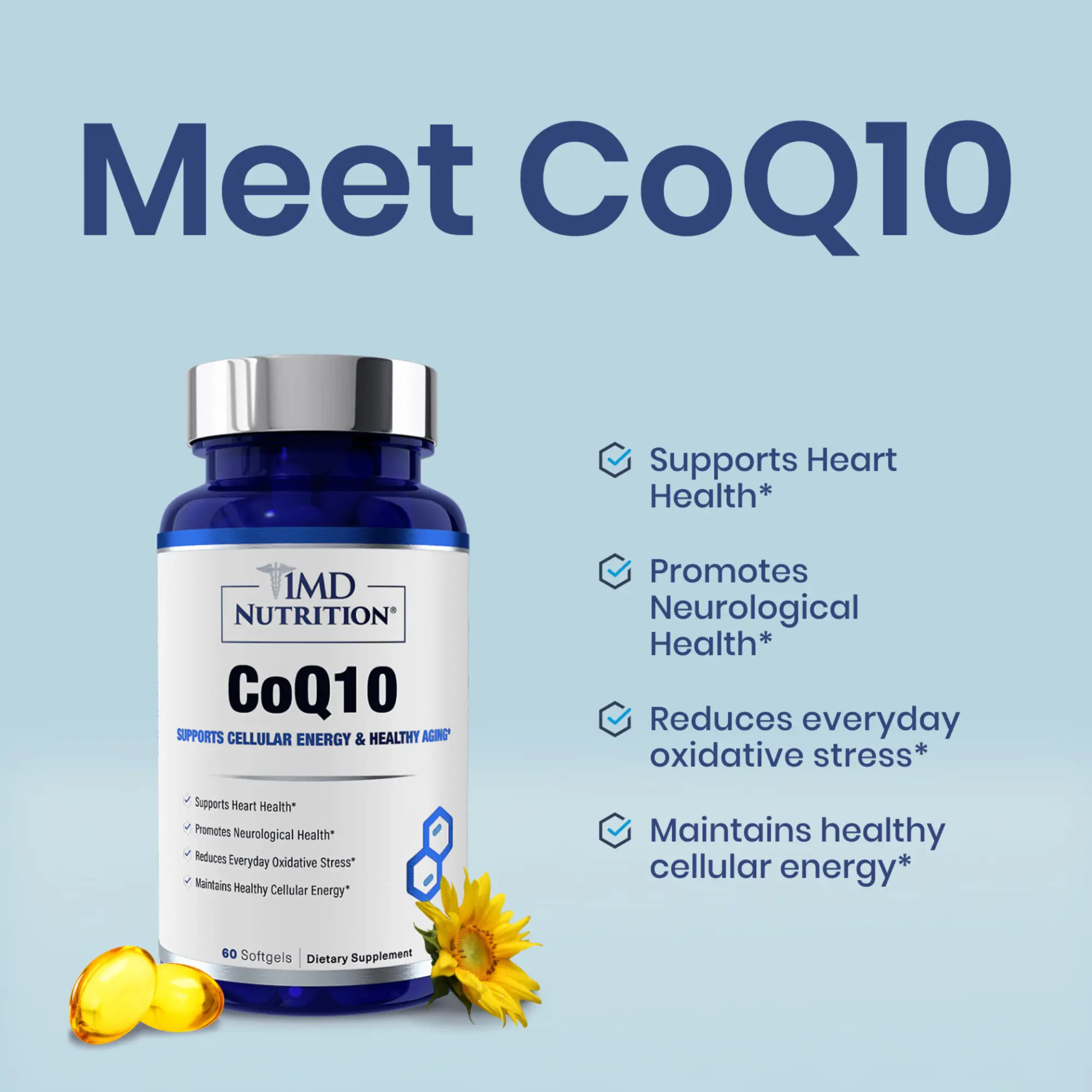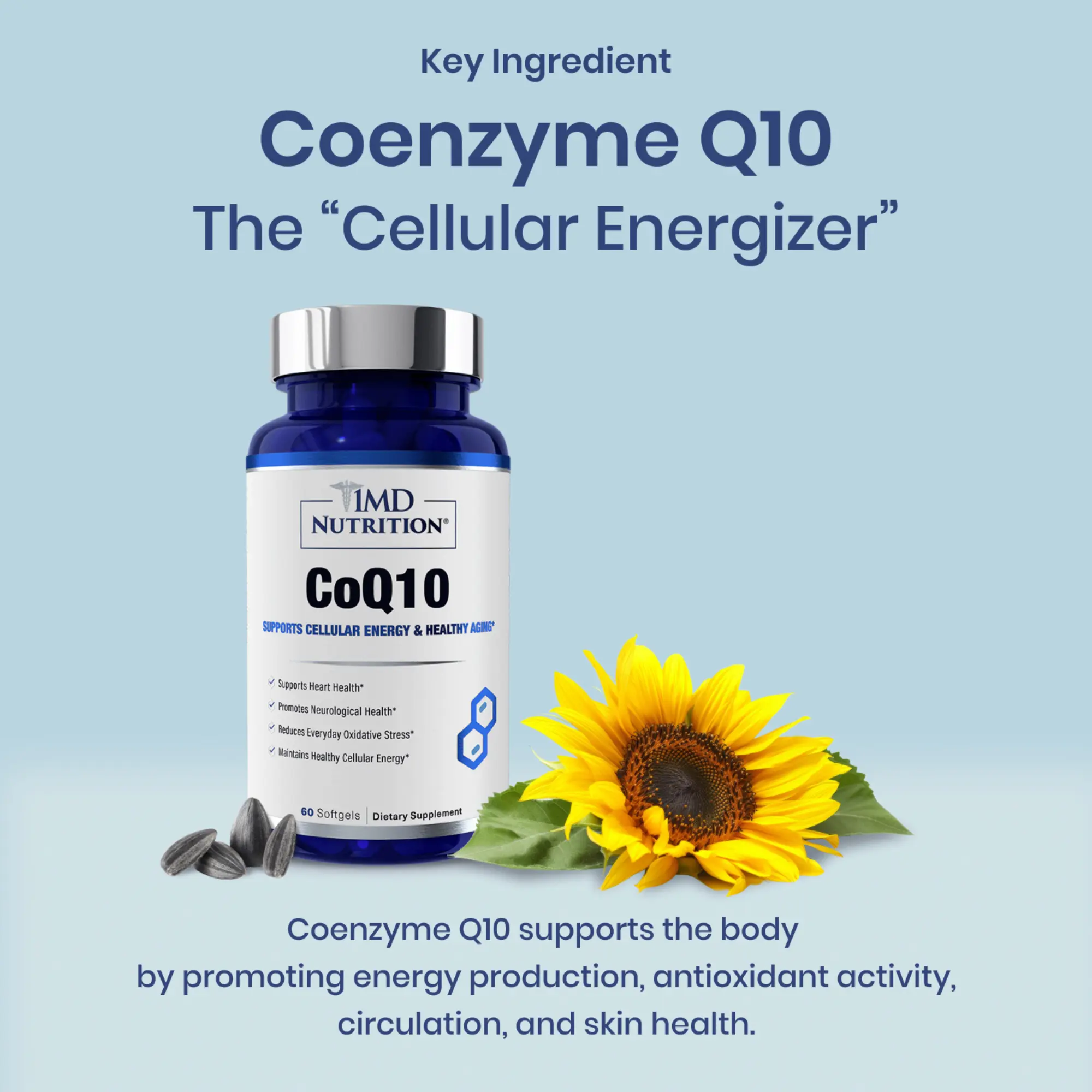 1MD Nutrition CoQ10 - Heart Health & Cellular Energy Production - Coenzyme Q10 Antioxidant Softgel Health Supplement - 2-Month Supply