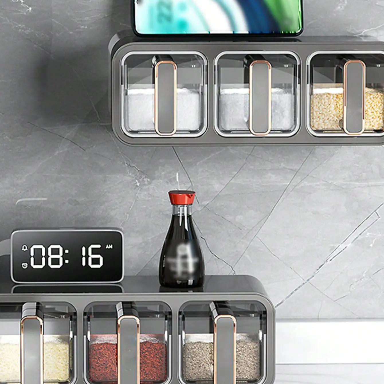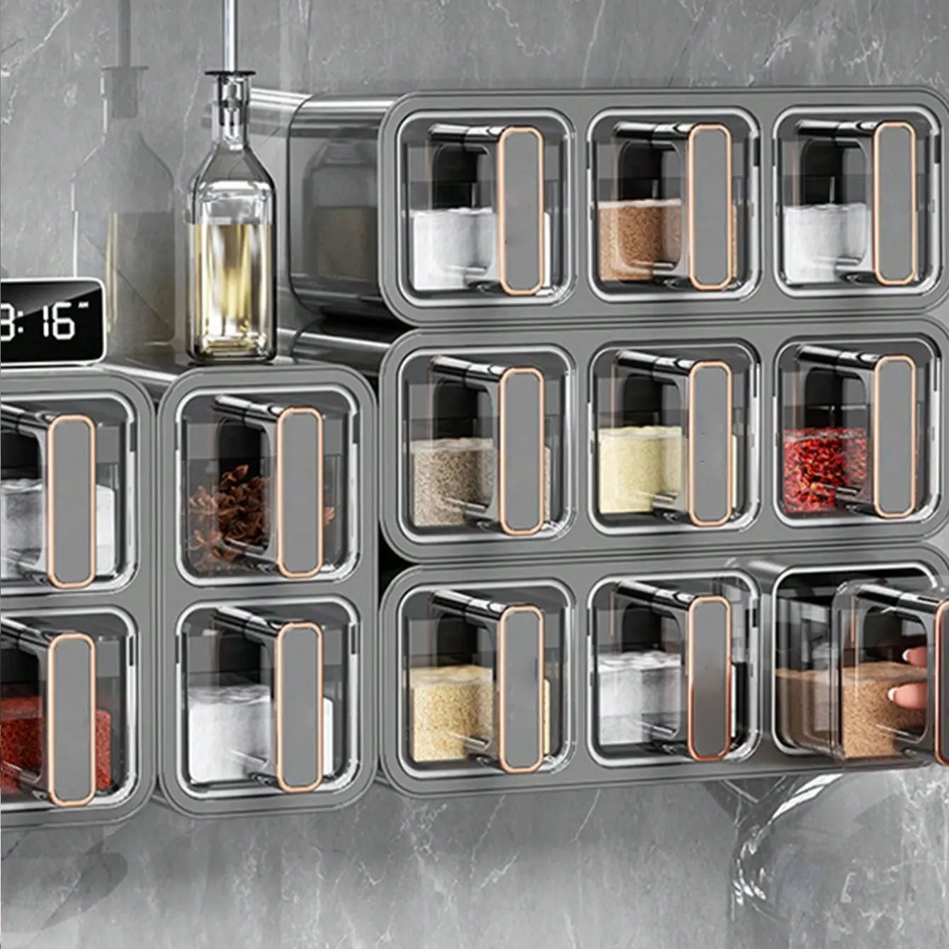 【Multi-purpose use】: This versatile seasoning container can be wall-mounted or used horizontally, adapting to your kitchen's needs.