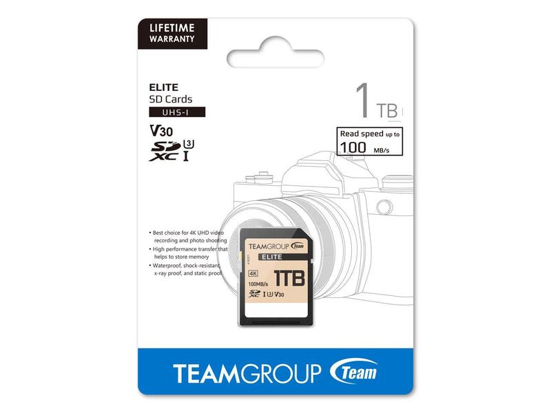 5. Team Group 1TB Elite 4K SD Card UHS-I U3 V30 Read/Write Speed Up to 100/90MB/s (TESDXC1TIV30P69)