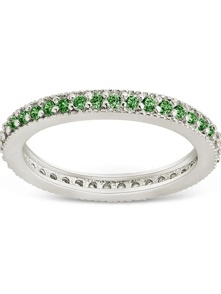 Bold. Bright. Endlessly wearable. This sterling silver band pops with hand-set emerald-hued cubic zirconia—perfect for stacking, layering, or making a subtle statement.
