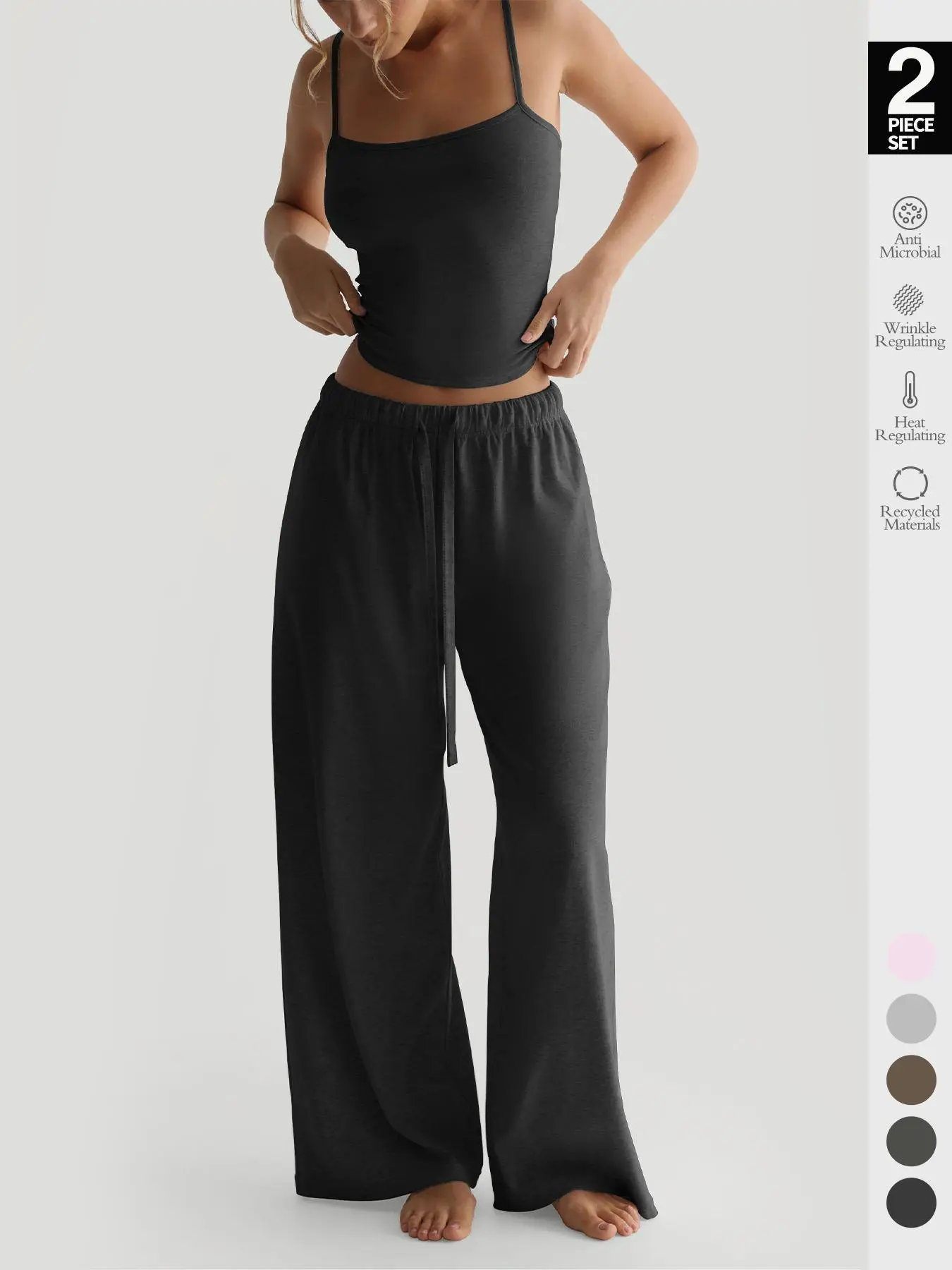 【Two-Piece Set】: Experience the convenience of a coordinated outfit that combines a tank top and wide-leg pants for effortless wear.