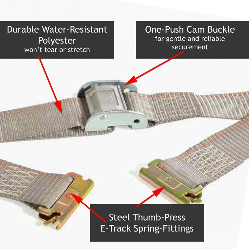 These cam buckle straps from DC Cargo Mall have made tightening cargo much easier and faster. Their rugged design and ease of use prevail over any ratchet strap on market today. Highly recommended product.