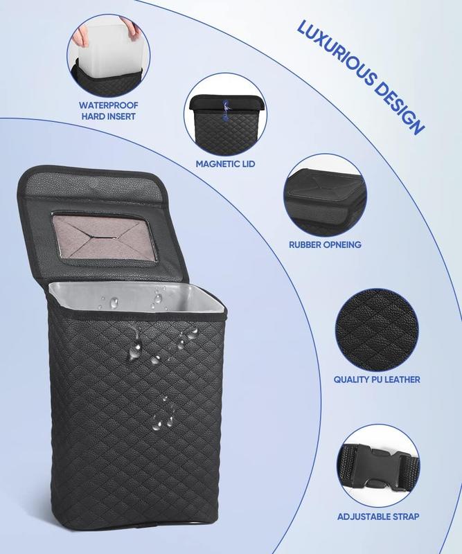 ·【2-GALLON SMART SPACE】Holds 7 days' worth of road trip trash or doubles as storage for masks, wipes, and maps. Slim profile tucks behind seats without stealing legroom in sedans/SUVs.