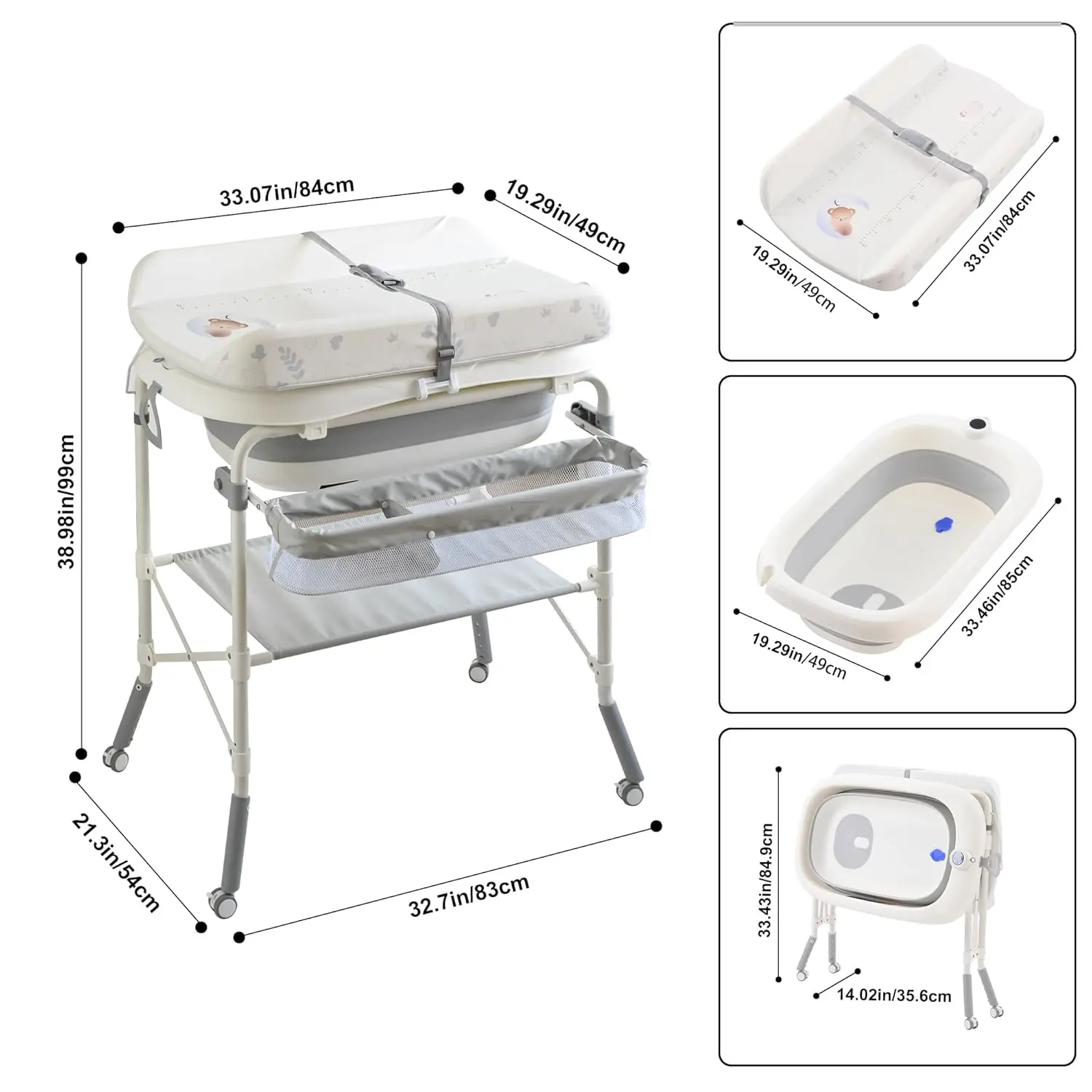 Yes, our diaper changing tables come with a removable bathtub that you can also take out and use on its own, which can be used up to 3 years old.