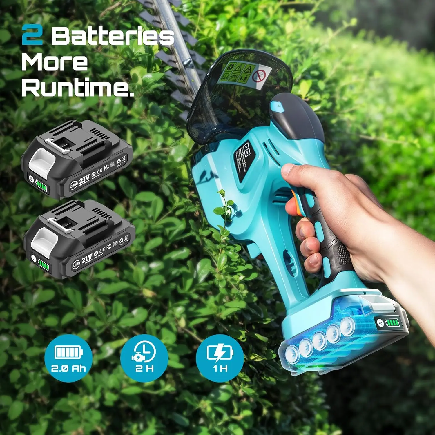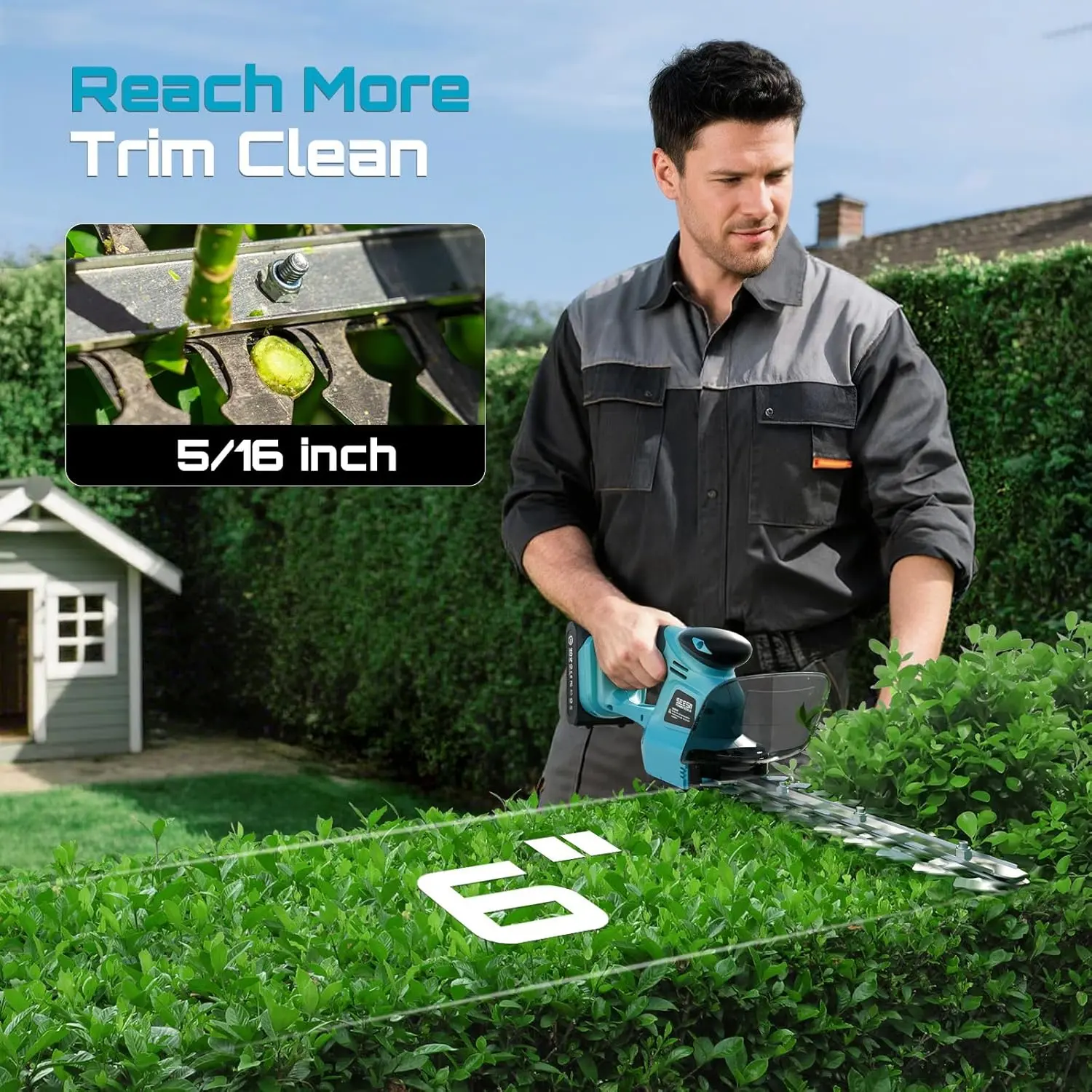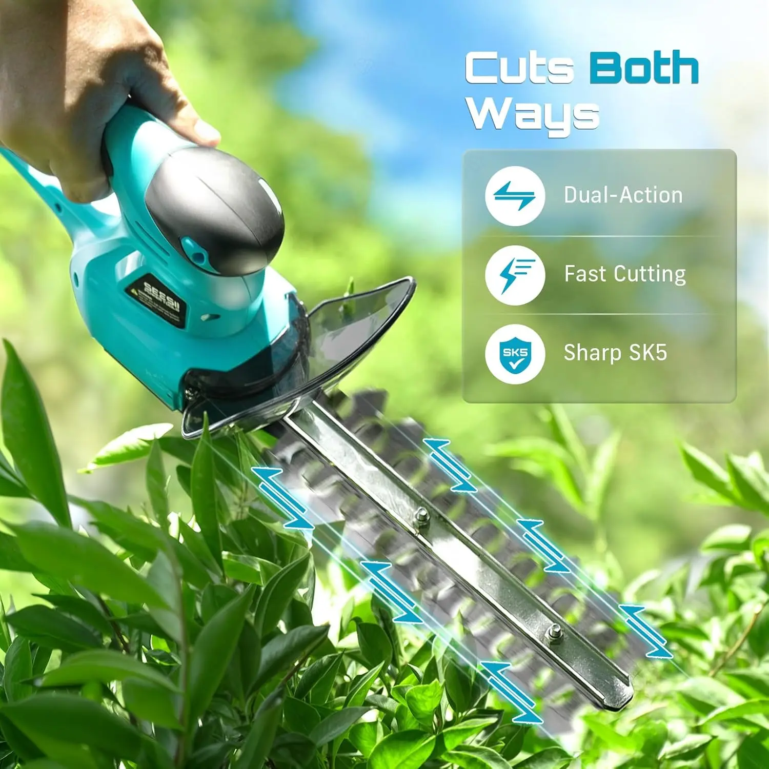 ·2-in-1 Versatile Design for All Trimming Needs: This cordless hedge trimmer and hedge Shear combines two tools in one compact unit, letting you switch easily between edging grass and trimming hedges. The 2-in-1 design saves space and streamlines your lawn care