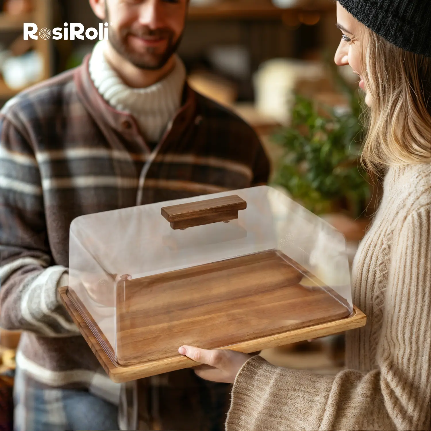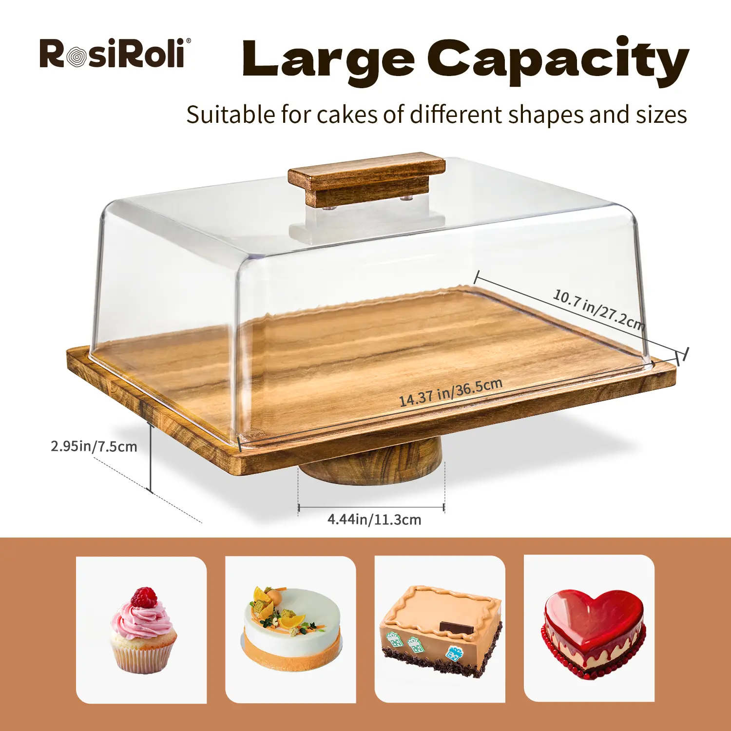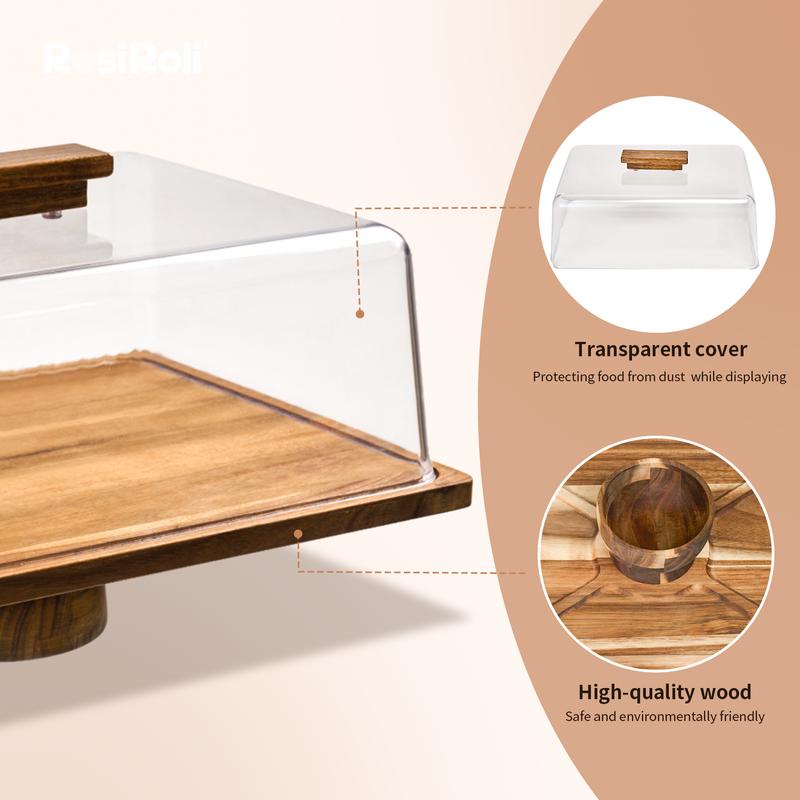 5. 【NewYear2026】Acacia Wood Cake Stand 2in1 with Plastic Lid & Bowl-Square Cake Display Stand for Dessert/Fruit/Cheese/Chips/Donut-Organiser,Valentine’s Day Gift