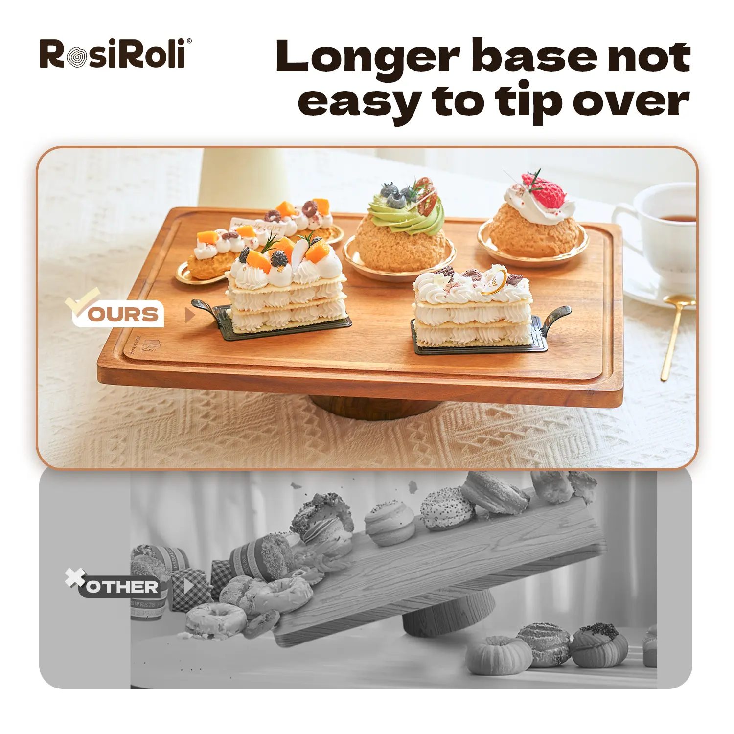 [Safe & Eco-friendly] - Cake stand and charcuterie board is made of natural acacia wood, which is odorless and can be recycled for direct contact with food.