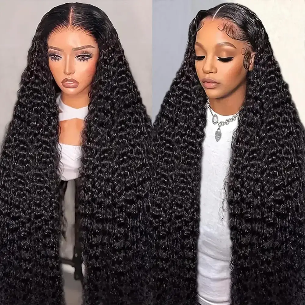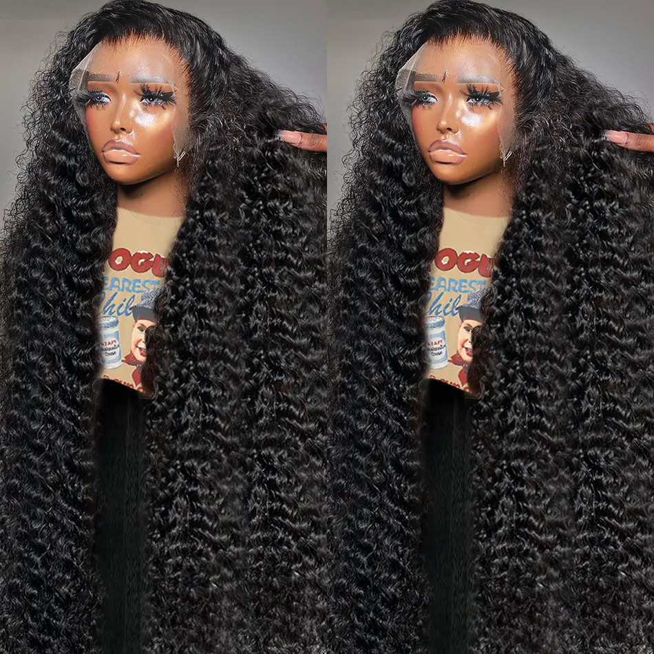 Bling Hair VIP 38 36 34 inch Kinky Curly Lace Front Wigs Human Hair Pre Plucked 180% Density 13x4 13x6 HD Transparent Lace Frontal Curly Wigs Human Hair Deep Curly Human Hair Wigs For Women Natural Black