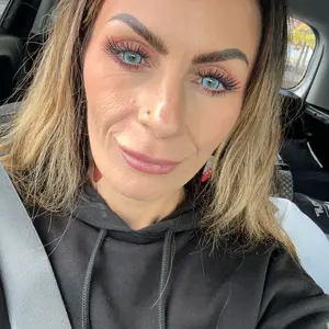 With my hair oulled back I have just one eye brown done in the other both eyebrows are done and they stay out too!!!