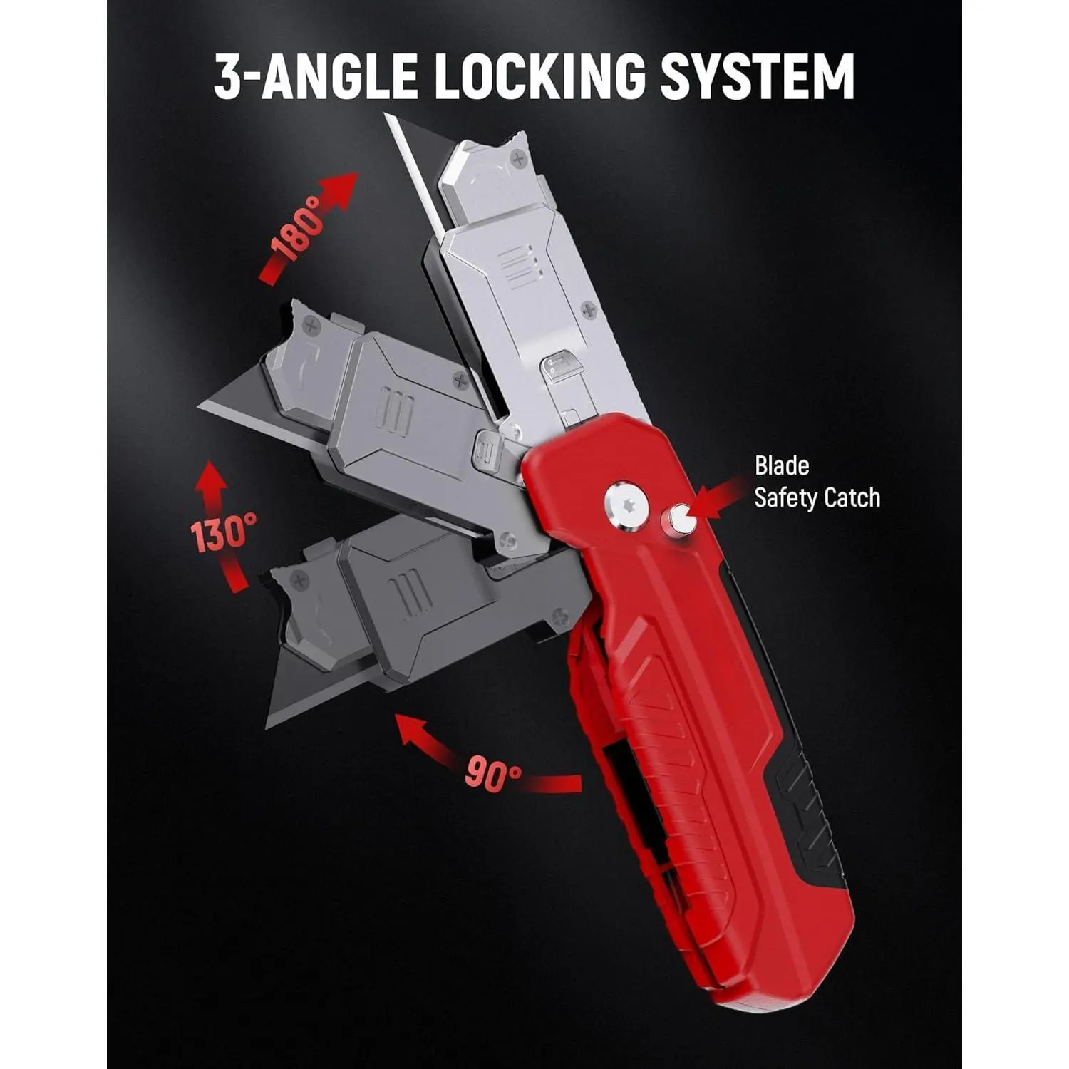 ·The utility knife locks firmly at 90°, 130°, and 180°, giving you full control for tasks like box cutting, plastic trimming, or carpet removal. Adjustable angles ensure safe and precise cutting in any environment.