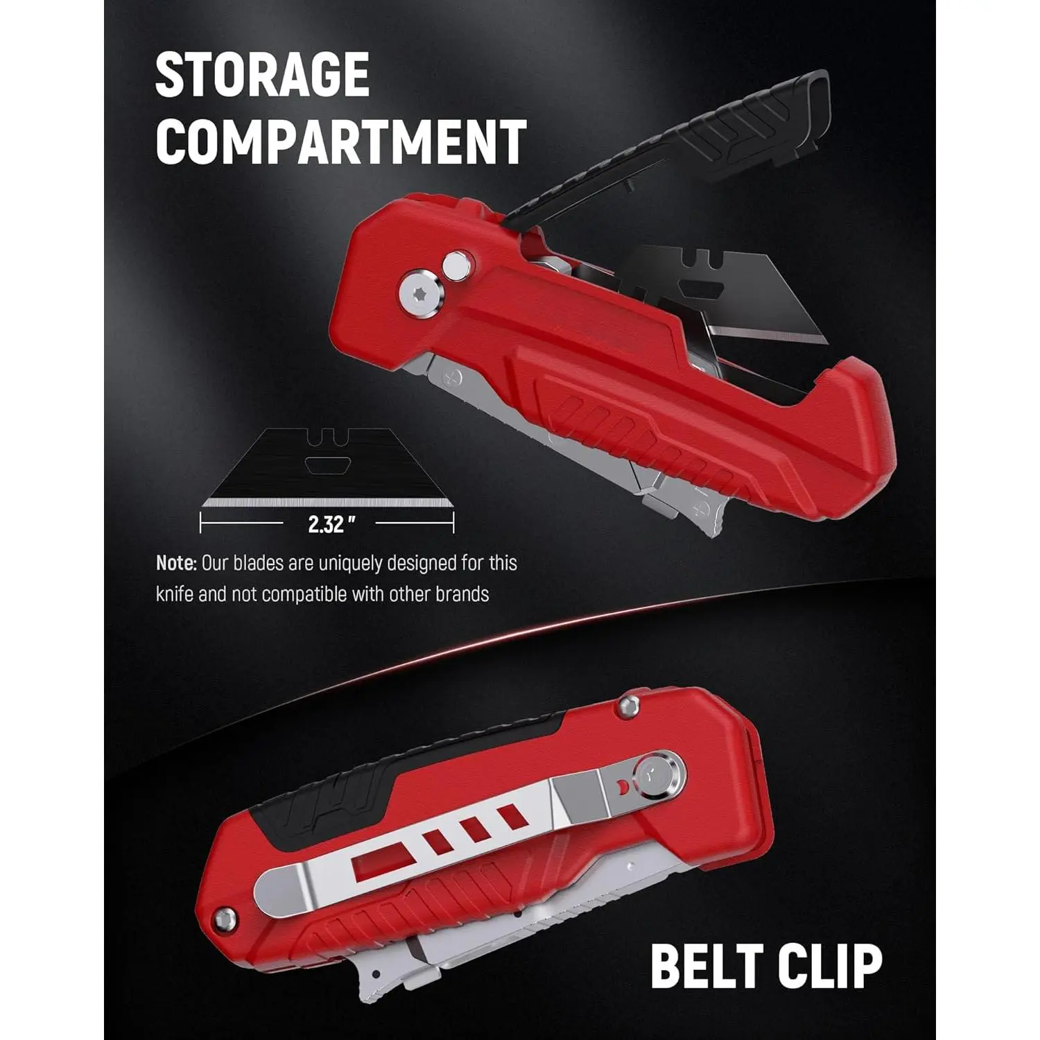 ·Premium carbon steel blades are 5 times sharper and more durable than ordinary blades. Rust-resistant coating ensures long-lasting performance. Built-in storage compartment holds 2 spare blades, and an additional box contains 10 replacement blades.
