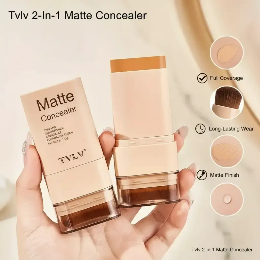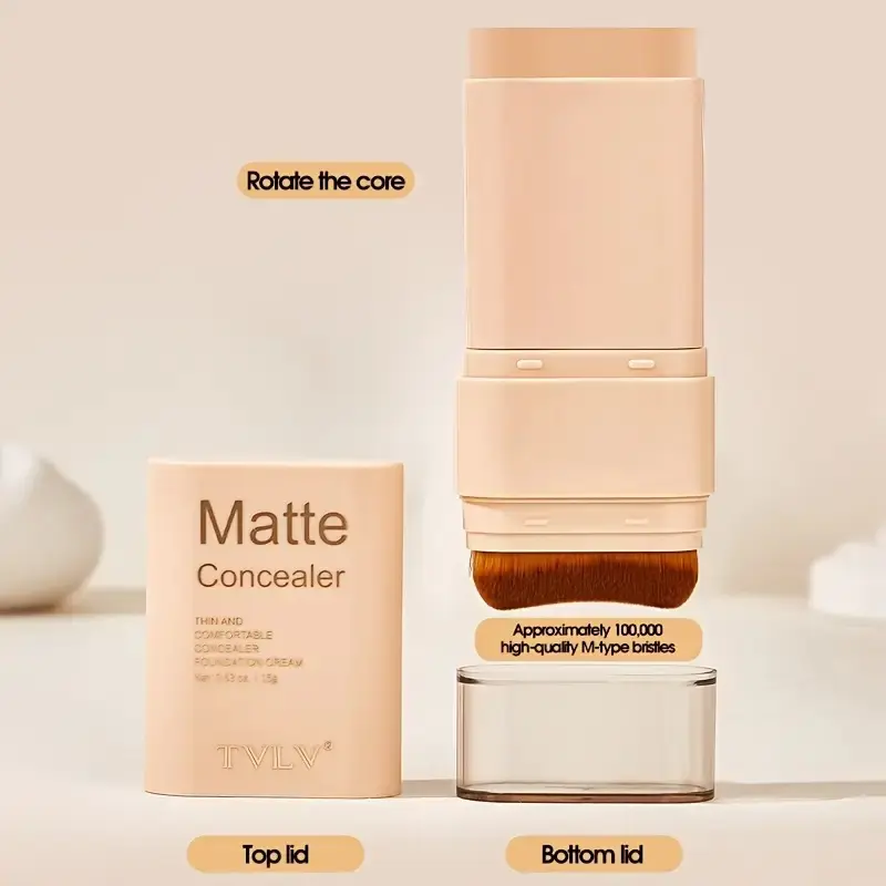 2-In-1 Foundation Concealer Stick, Long-Lasting Waterproof Matte Effect, Flawless Complexion, Internal Brush Head, Full Coverage Creamy Texture, Multi-Tones Available