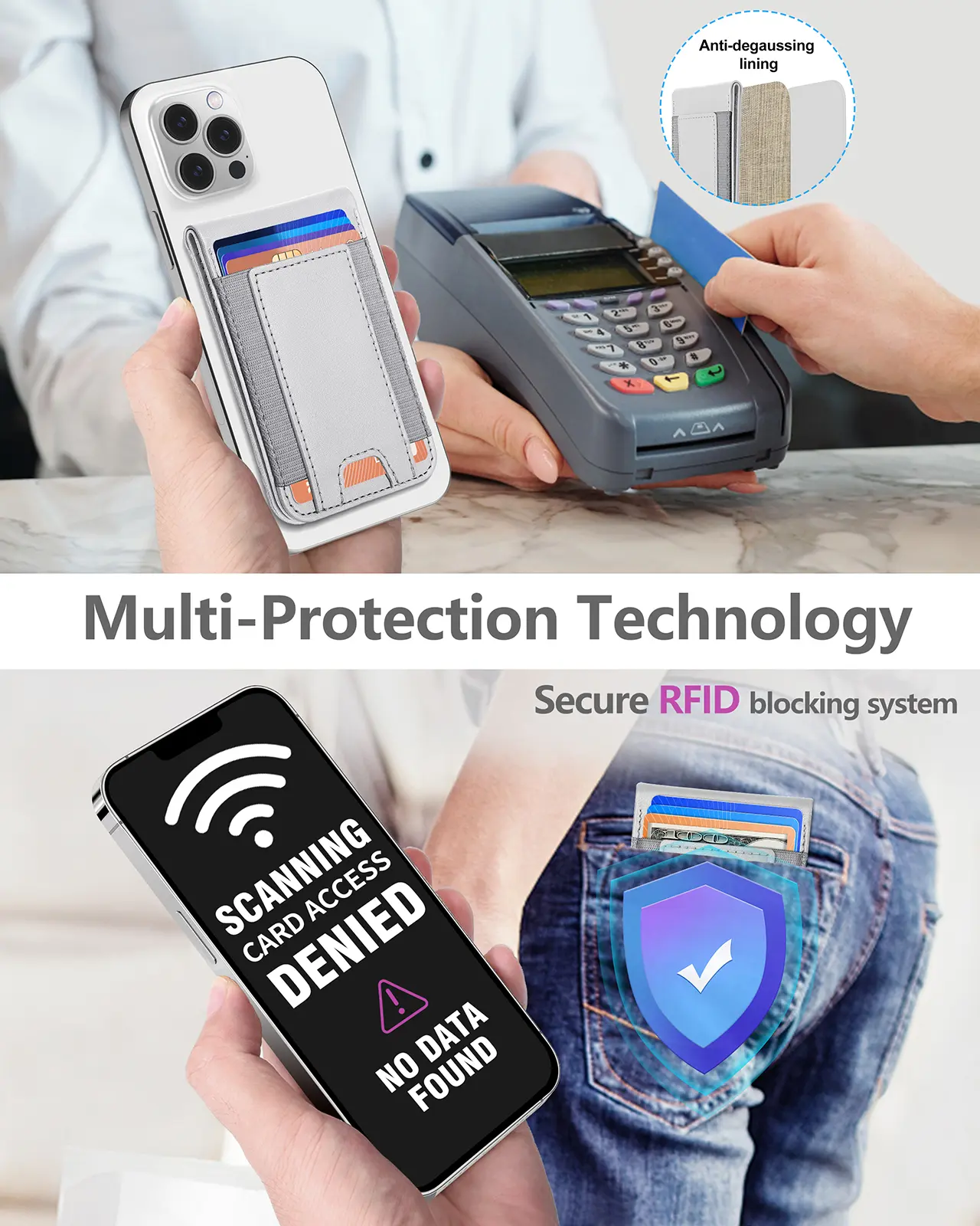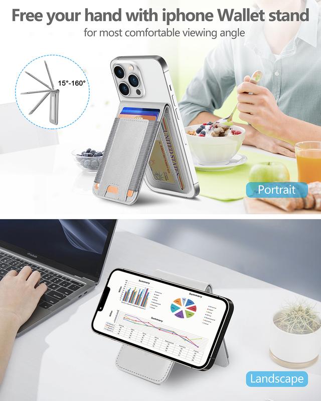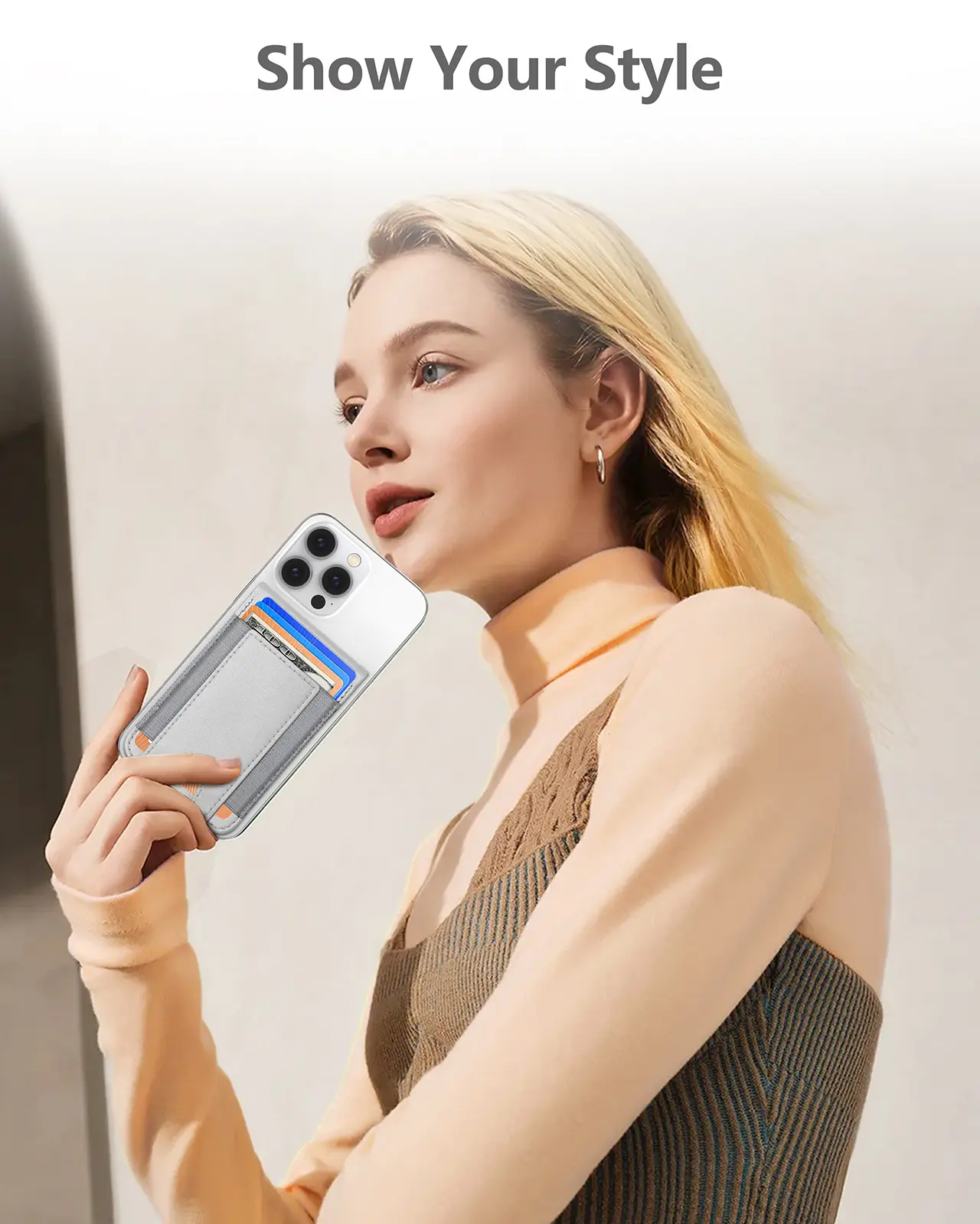 Tired of bulky wallets weighing you down? Meet your new everyday essential: a sleek MagSafe wallet that snaps right onto your iPhone. Crafted from 100% vegan leather, it holds up to 9 cards plus cash, and features a clear ID window for effortless access. The wallet’s powerful 3500 Gauss magnets keep it securely attached, so no worries when you toss your phone in your pocket. Bonus: the adjustable stand lets you prop up your iPhone horizontally or vertically—perfect for binge-watching, FaceTime, or casual browsing hands-free. Plus, with multi-protection technology including RFID blocking and anti-degaussing lining, your cards stay safe from digital theft and demagnetization. Compatible with iPhone 12, 13, 14, and 15 series (excluding mini models) and MagSafe cases, this wallet blends style, convenience, and security. Inside the box, you’ll find one magnetic wallet with stand and a 365-day warranty for peace of mind. Ready to ditch the bulk and upgrade your phone game? Snap this wallet on and go hands-free with confidence!