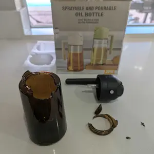 It's a shame your 2-in-1 oil bottle arrived damaged, especially since it sounds like such a versatile kitchen tool! The dark green glass for keeping oil fresh, the fine mist spray and clean pour options, and the anti-clogging straw with a drip-free spout all sound like fantastic features. A 17oz capacity is definitely ideal for various oils and vinegars too.