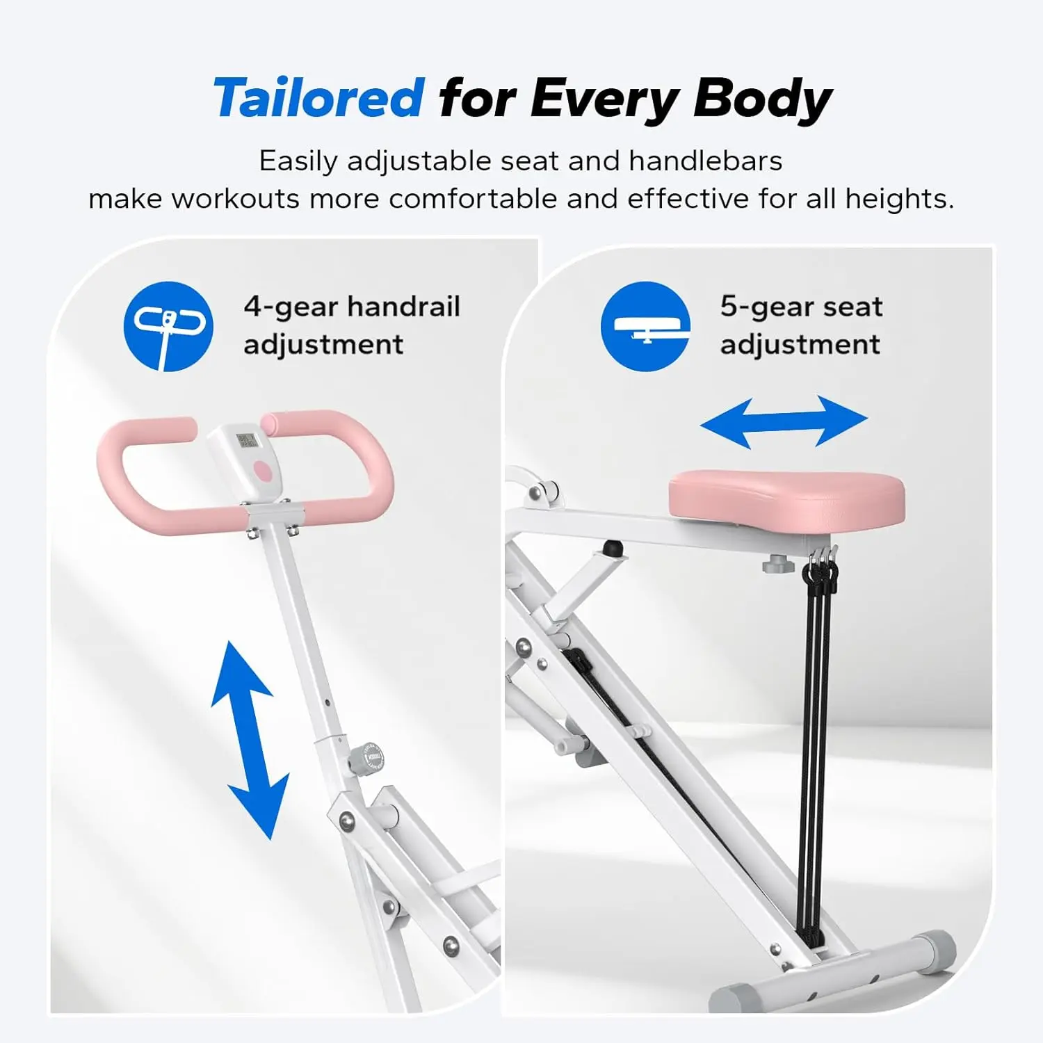 Durable and Reliable: Our machine is constructed with high-quality materials to ensure long-lasting use and reliability. It supports a maximum weight of up to 350 pounds, making it perfect for users of all sizes. The adjustable handbar and adjustable padded seat fit exercisers range from 4'11" to 6'11", so everyone can enjoy an effective workout.