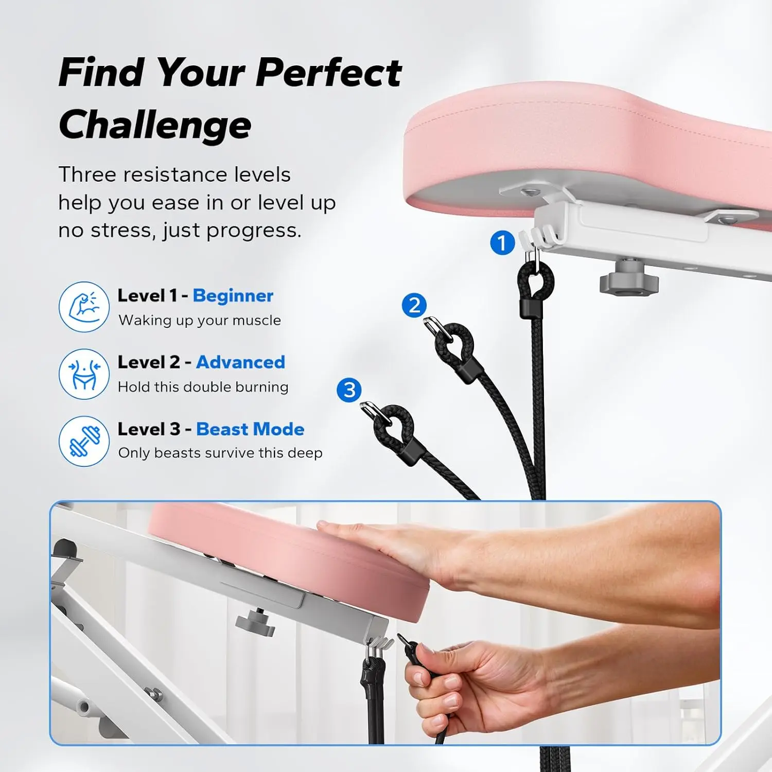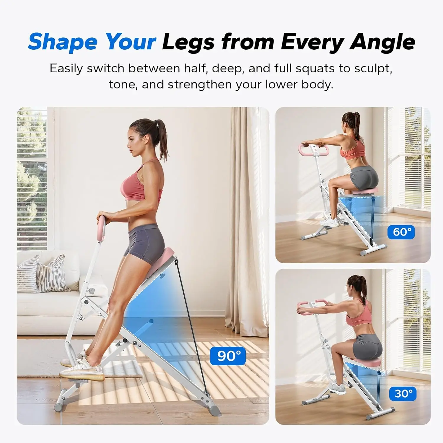 Real-Time Feedback and Resistance Levels: The Squat Exercise Row Machine comes with a built-in LCD display that provides real-time feedback on your workout, including calories burned, distance, time, and more.The machine also includes three resistance bands that allow you to customize your workout to suit your fitness level and goals.Each band adds about 22 pounds of resistance, providing you with an effective workout that challenges you at every level.