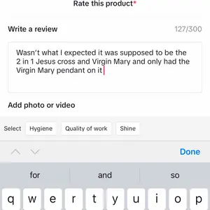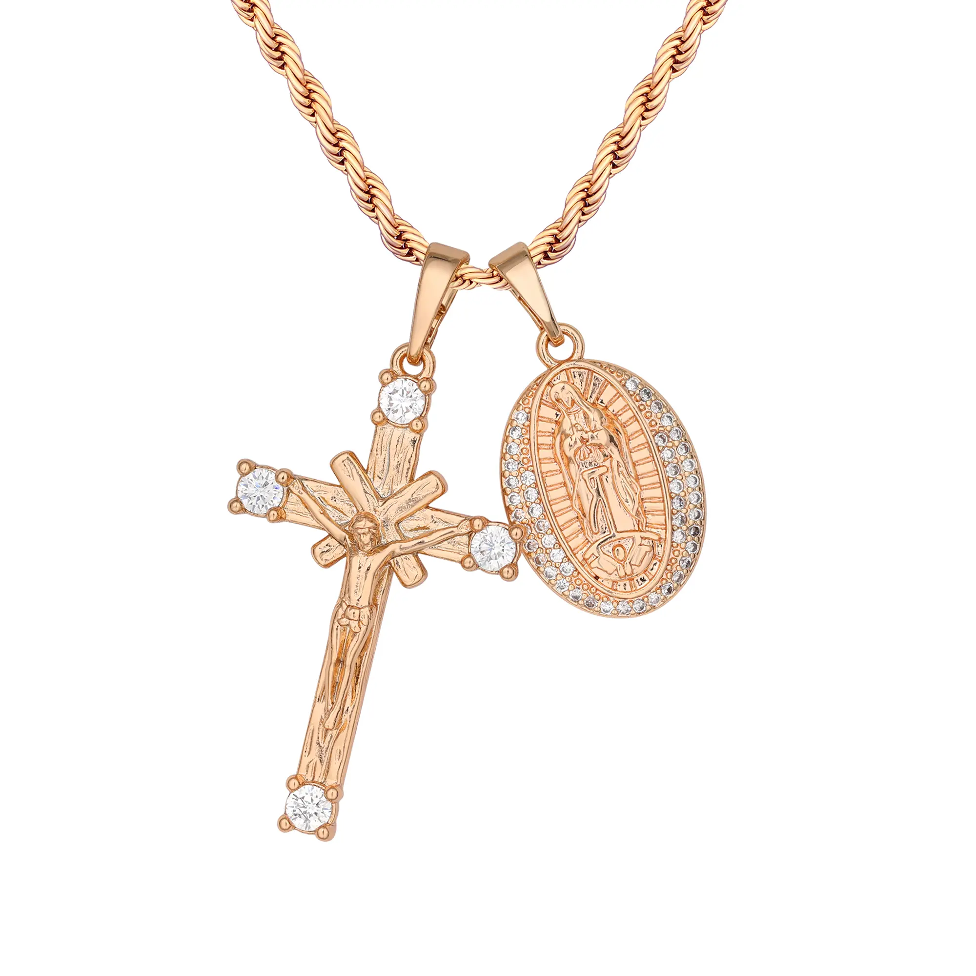 Wasn’t what I expected it was supposed to be the 2 in 1 Jesus cross and Virgin Mary and only had the Virgin Mary pendant on it, it also pulls your hair and gets all tangled in the chain and clasps