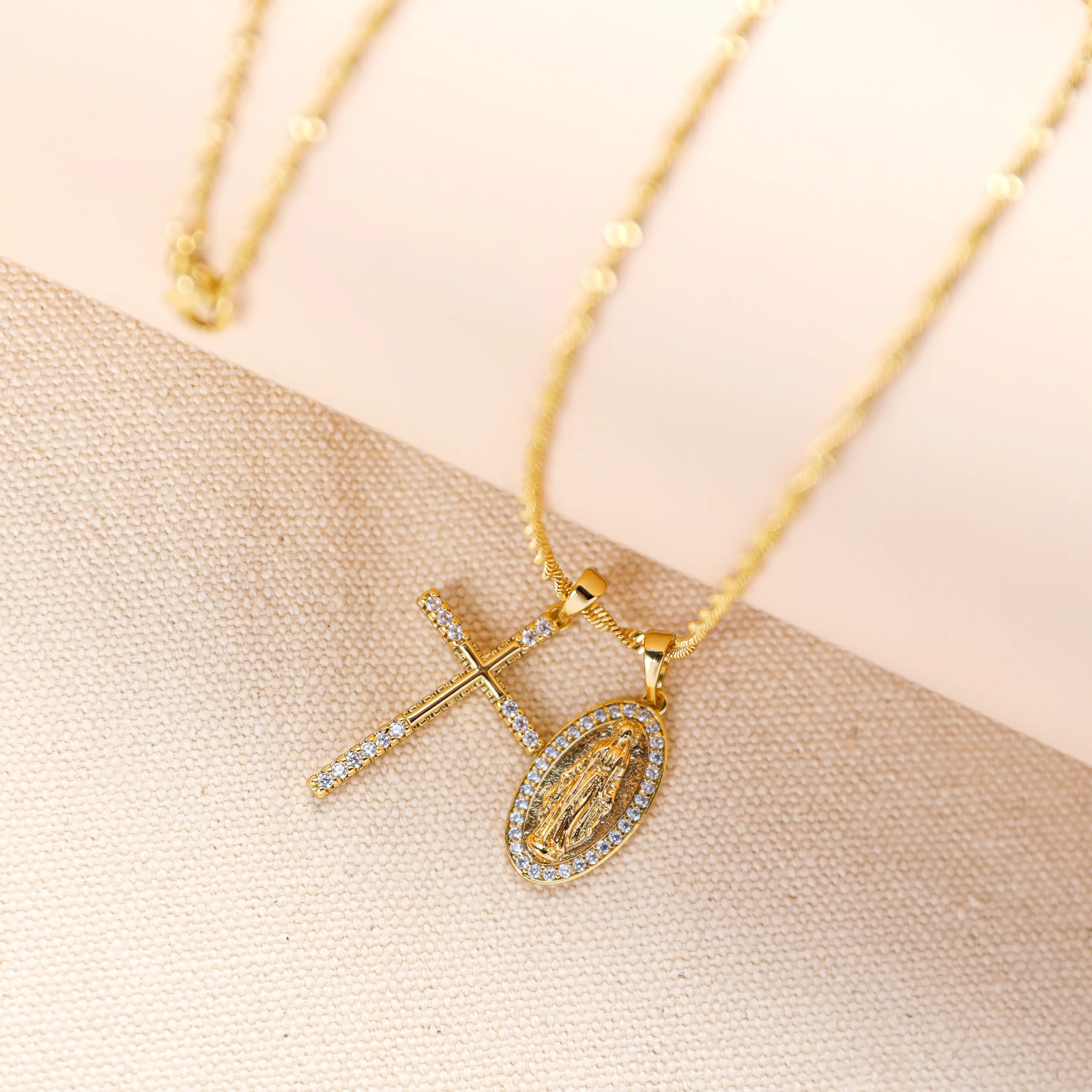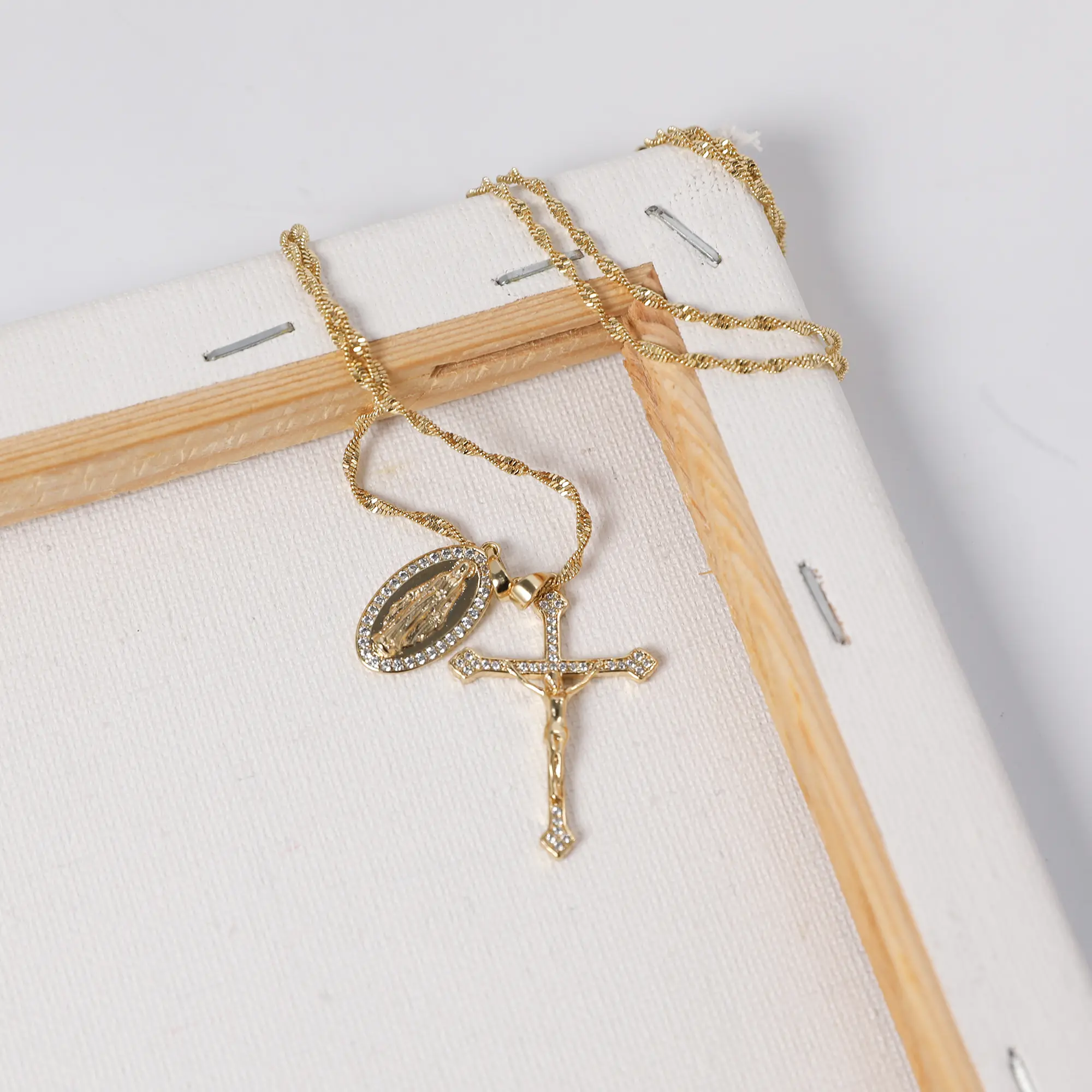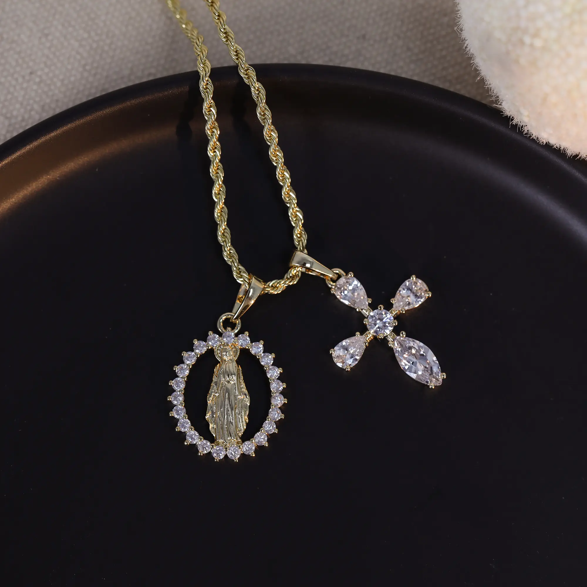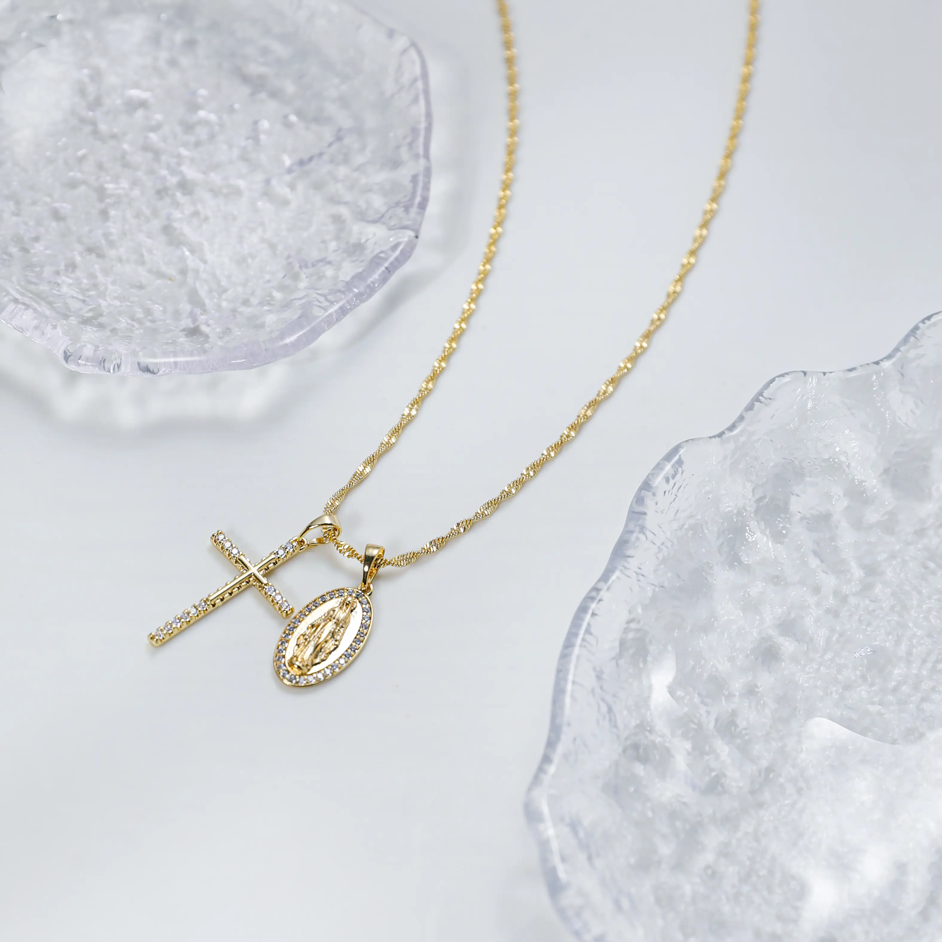 MYTYS 2 in 1 Virgin Mary & Jesus Pendant Necklace Religious Faith Inspired Cross Amulet Handmade Fashion Accessory for Women Men Gift Set
