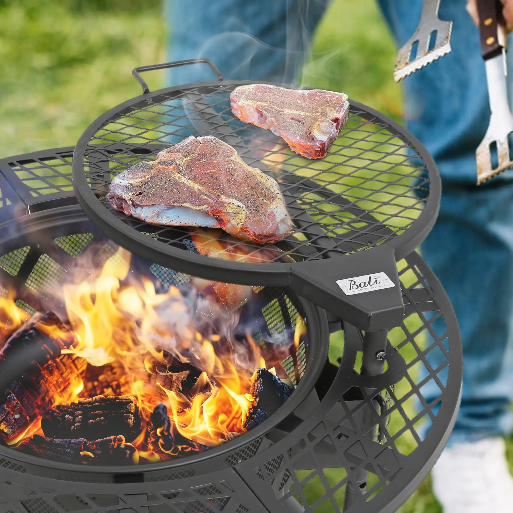 This is perfect for back yard relaxing. It has a deep pit with screen mesh around the pit to prevent fire from falling out. Absolutely love the adjustable and or removable cooking grate. Grilling burgers, hot dogs, or steaks is so easy. Very well built it is Heavy duty design