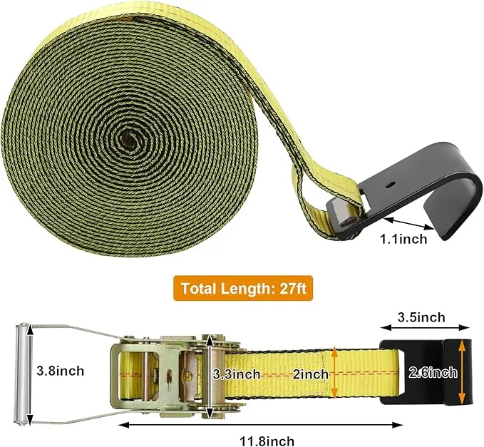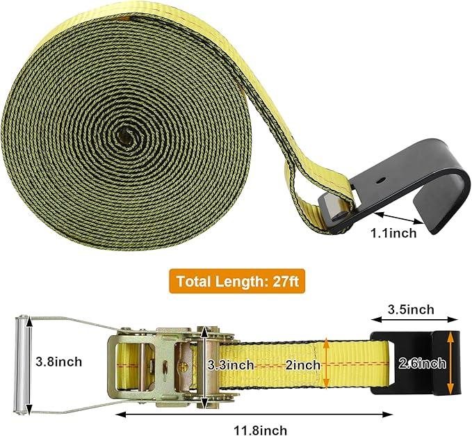 These ratchet belts offer a length of 27 feet and a width of 2 inches, providing ample length that can be adjusted to fit various needs.
