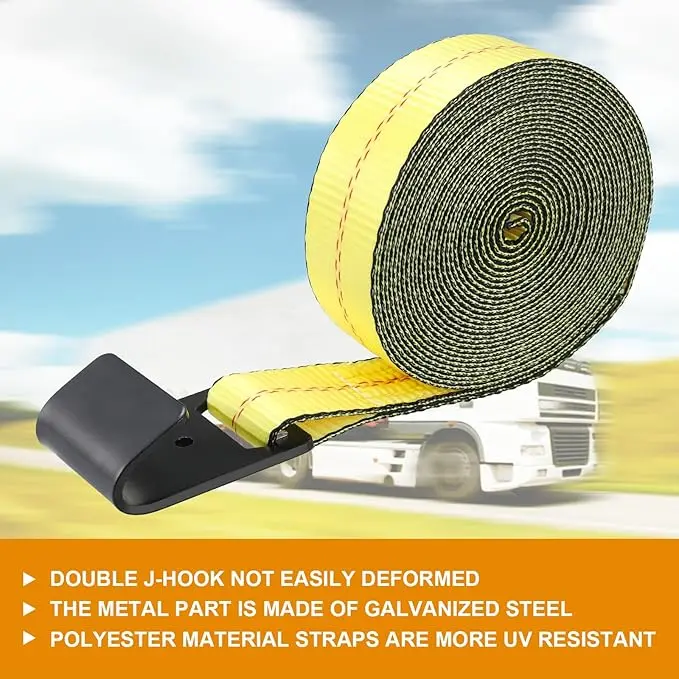 The flat hook design increases strength and compatibility with most flatbed trailers, allowing for direct attachment to trailer side rails without causing damage to vehicles.