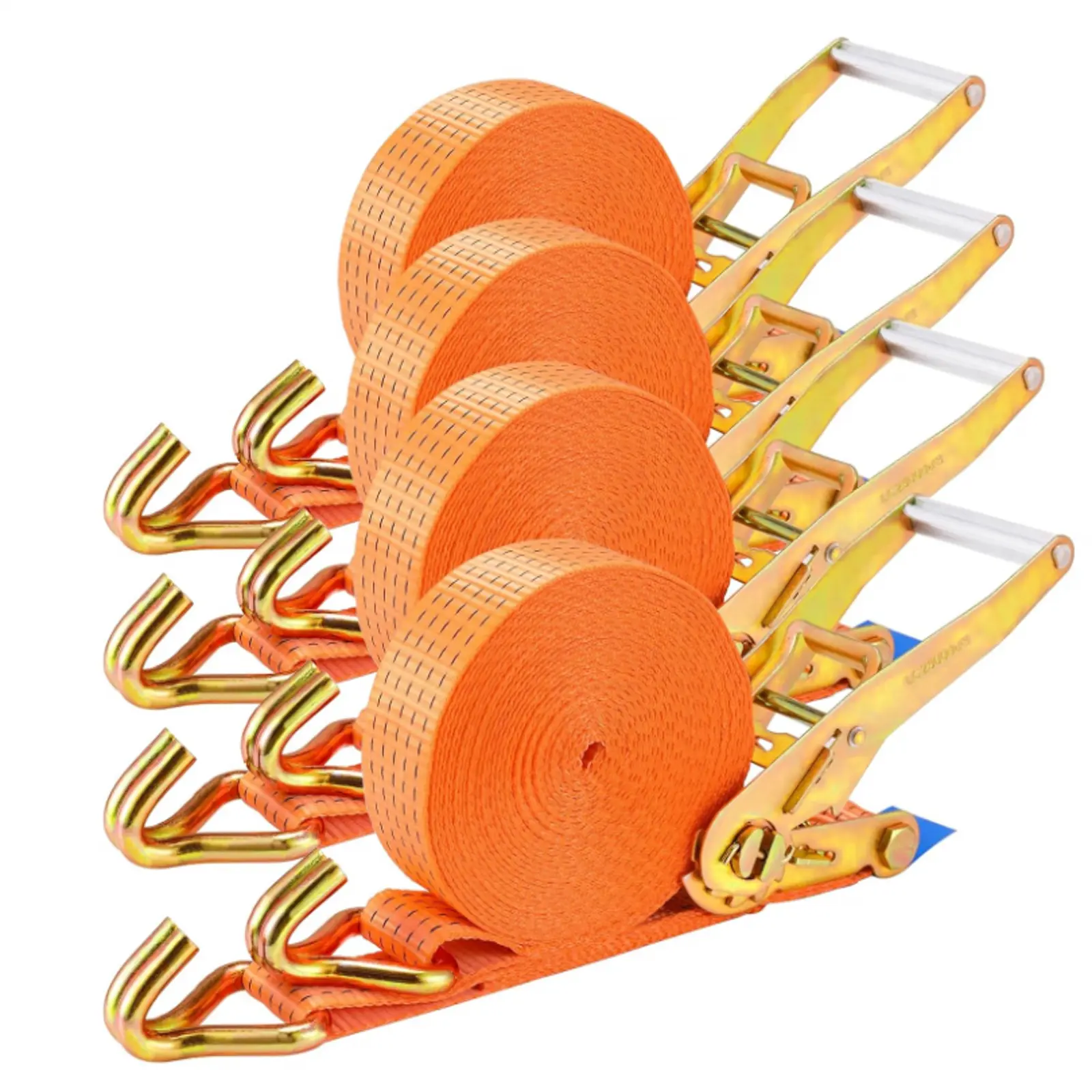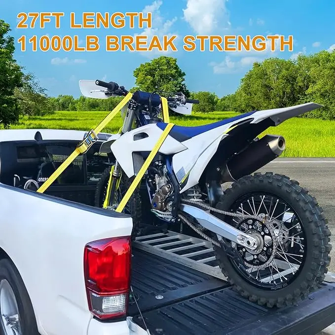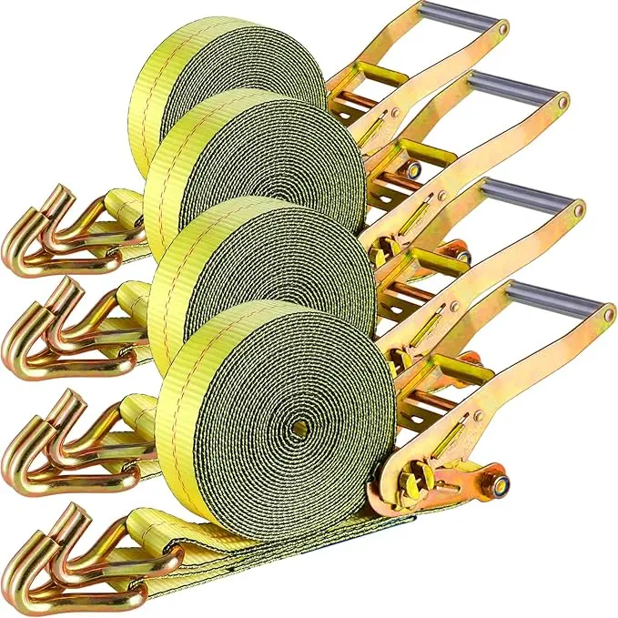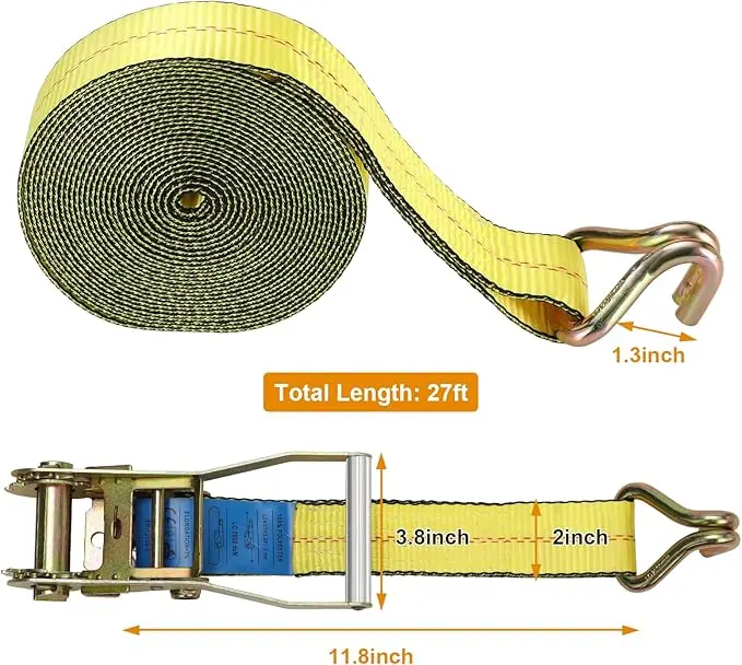 These ratchet straps measure 27 feet in length and 2 inches in width, offering ample length for various securing needs. The adjustable design allows you to set the strap to any desired length.