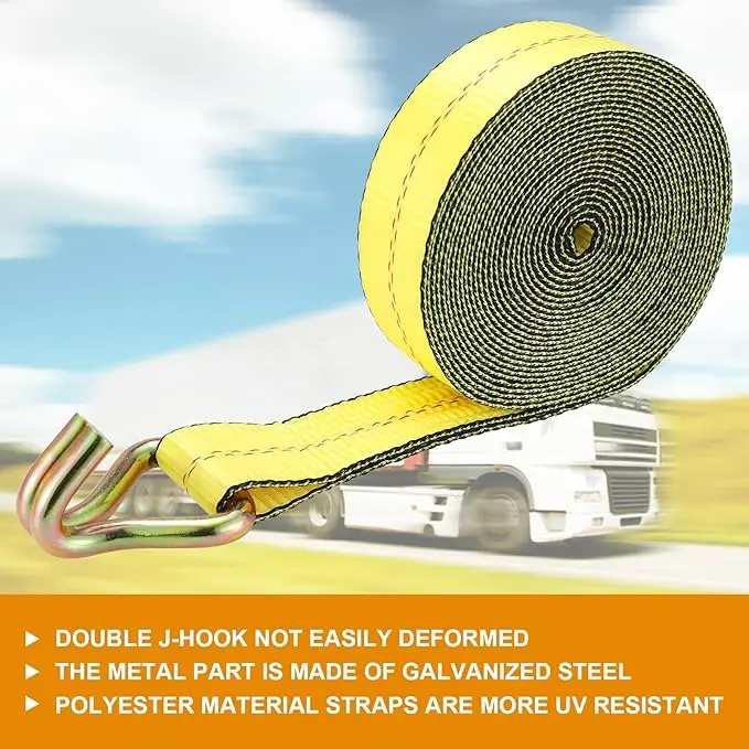 Two J-shaped hooks enhance the load-bearing capacity and provide secure attachment to thin steel areas on trailers, car bumpers, truck bed tie-down points, and various anchor types such as D-rings and O-rings. These hooks are designed to prevent scratching your vehicle.