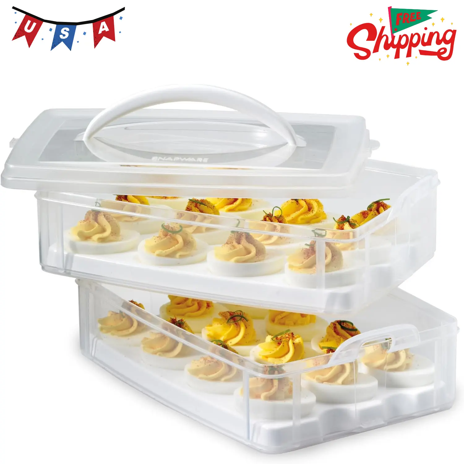 ·EGG CARRIER: The Snap 'N Stack 2-layer carrier is perfect for transporting eggs and all manner of sweets with safety. Two holders can hold up to 24 eggs or treats, and the stackable trays keep food items separate and organized.