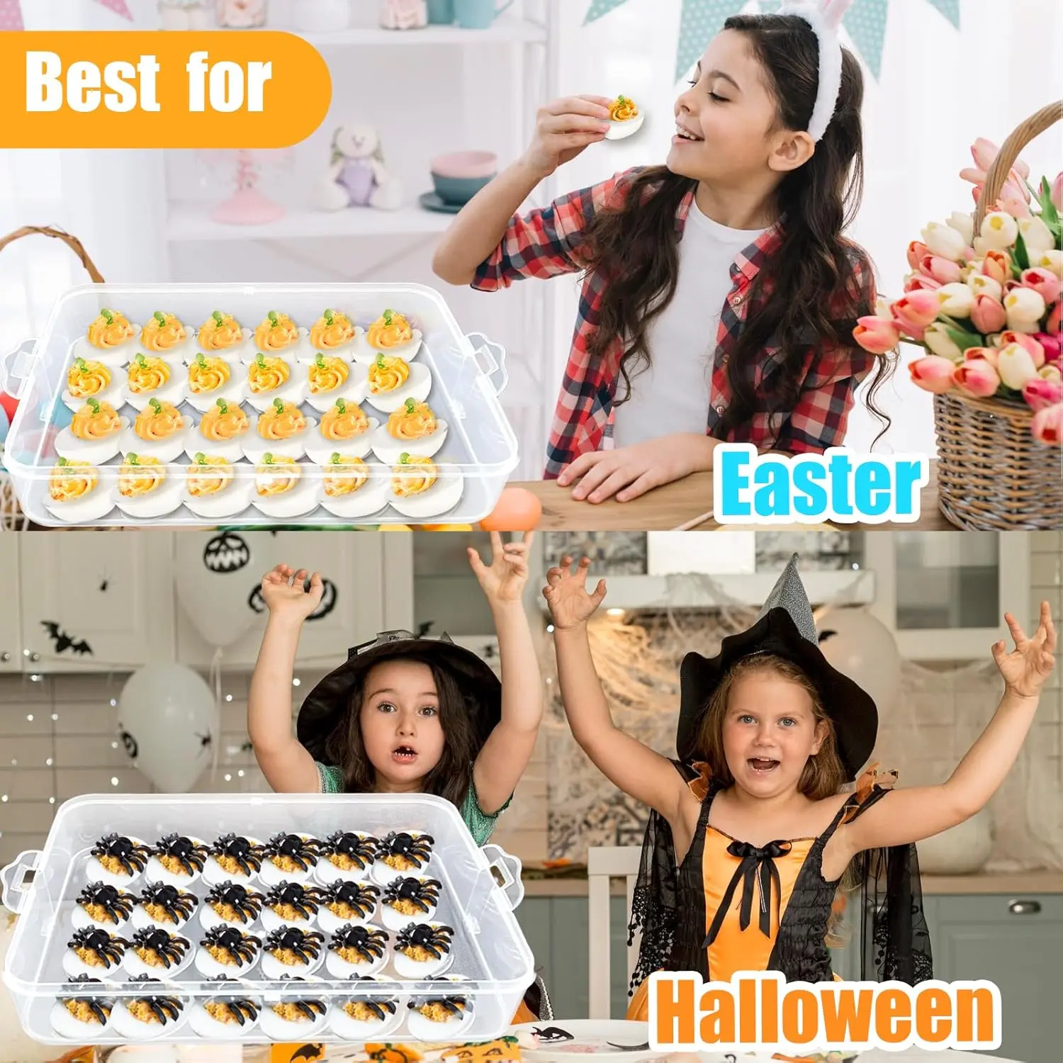 Wide Application : As a container for deviled eggs , this deviled egg containers with lid is for Thanksgiving Day, Halloween, Easter, birthday, party , movie night, house hold, wedding, Holiday and any festival.
