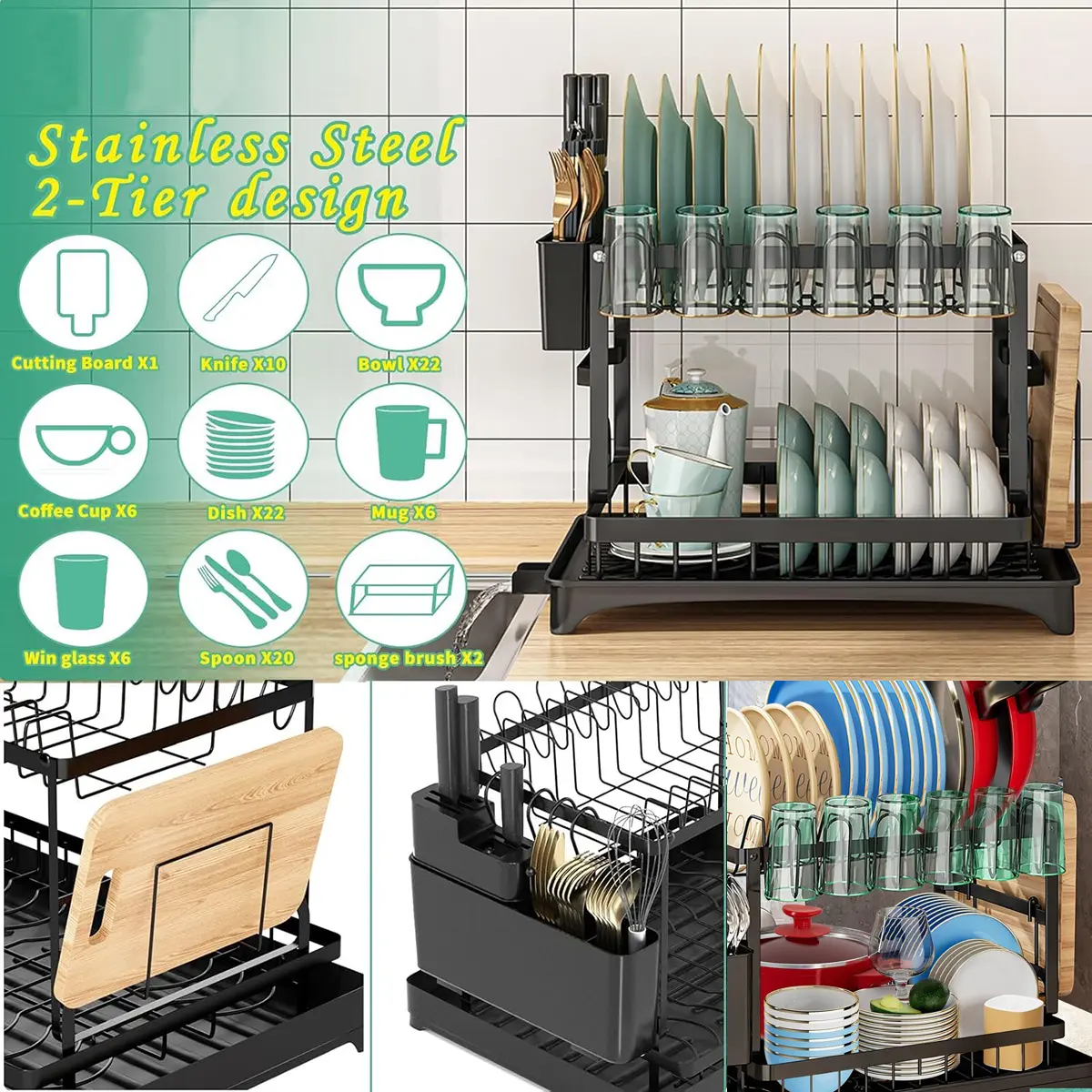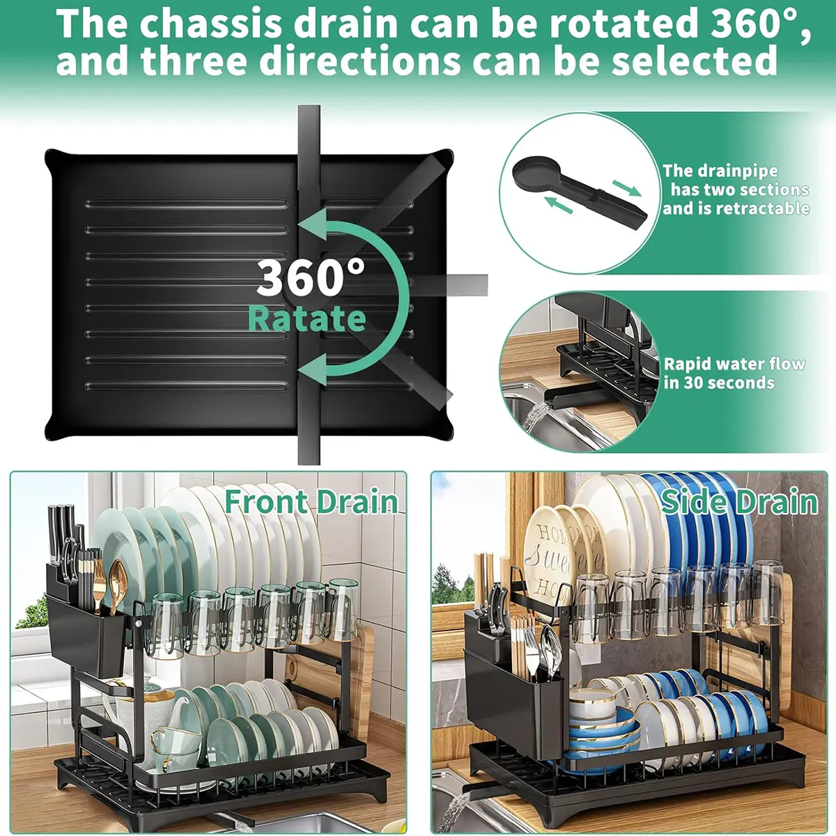 ·2-Tier Design: This dish drying rack features a 2-tier structure, providing ample space for drying your dishes. 🧼