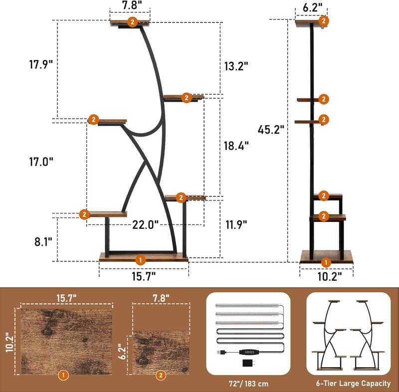 ·2 Pack, 45.2" Tall, 12 Tiered Plant Stands - The vertical design of these plant stands provides ample space for multiple small to medium-sized plants, catering to various gardening needs and making them ideal for homes with limited space. In addition to planting, they can also serve as chic display spots for photos, books, and crafts, enhancing the aesthetic appeal and functionality of any room